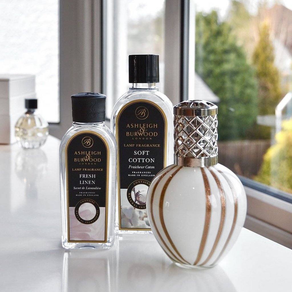 Velká katalytická lampa anglického výrobce Ashleigh & Burwood v elegantním provedení s metalickými zlatými linkami na mléčně bílém podkladu. To vše zdobí stříbrná ornamentální korunka. Katalytická lampa sama o sobě nevoní a aby vše fungovalo jak má, budete potřebovat náplň s interiérovým parfémem. Do katalytické lampy vybírejte pouze náplně značky Ashleigh & Burwood, kterých složení je přizpůsobeno kahanu. Použití náplně od jiného výrobce může poškodit kahan nebo negativně ovlivnit jeho funkčnost a životnost.