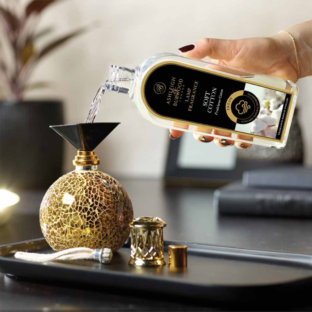 Náplň s interiérovým parfémem je určena do katalytické lampy Ashleigh & Burwood. Náplň o objemu 500 ml umožňuje přibližně 20 hodin difúze a 80 hodin provonění, zatímco náplň o objemu 250 ml poskytuje zhruba 10 hodin difúze a 40 hodin provonění.