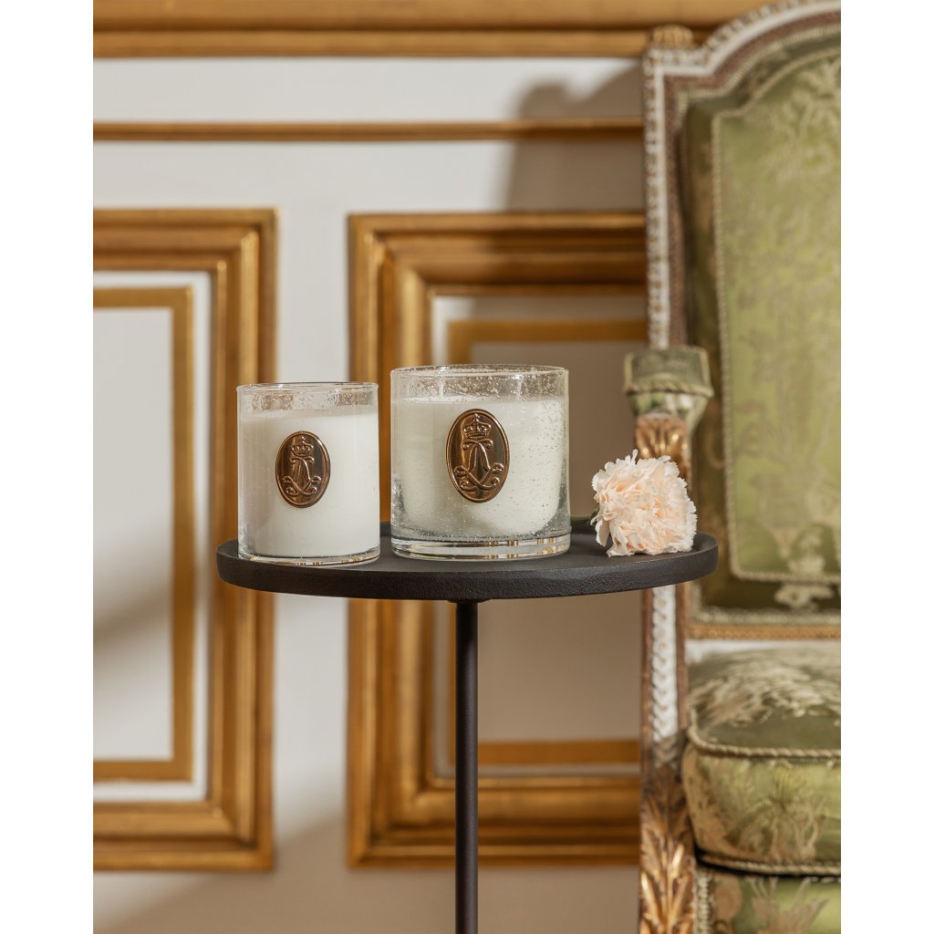 Vstupte do světa přepychu a noblesy s exkluzivní svíčkou, vyrobenou ručně v duchu nejlepších tradic svíčkařů v západofrancouzském městě Cugand. Svíčka s oficiální licencí zámku Château de Versailles se směsí minerálního a rostlinného vosku vyniká bohatým a přitom jemným aroma niche parfému z dílny renomované francouzské parfumérky Cécile Zarokian. Výjimečná vzhledem i způsobem zpracování je sklenice ze speciálního bublinkového skla, která je vyrobena ručně ve francouzském Cannes a která se nádherně rozzáří plápolajícím světlem plamínků. Zlatá kovová pečeť s monogramem krále Ludvíka XIV. v podobě dvojitého propleteného LL zakončeného královskou korunkou, symbolem moci, je už jen třešničkou na pomyslném dortu. Každá svíčka Château de Versailles je originál, úhledně zabalený v elegantní krabičce se zlatou ražbou, kterou je radost otevřít.