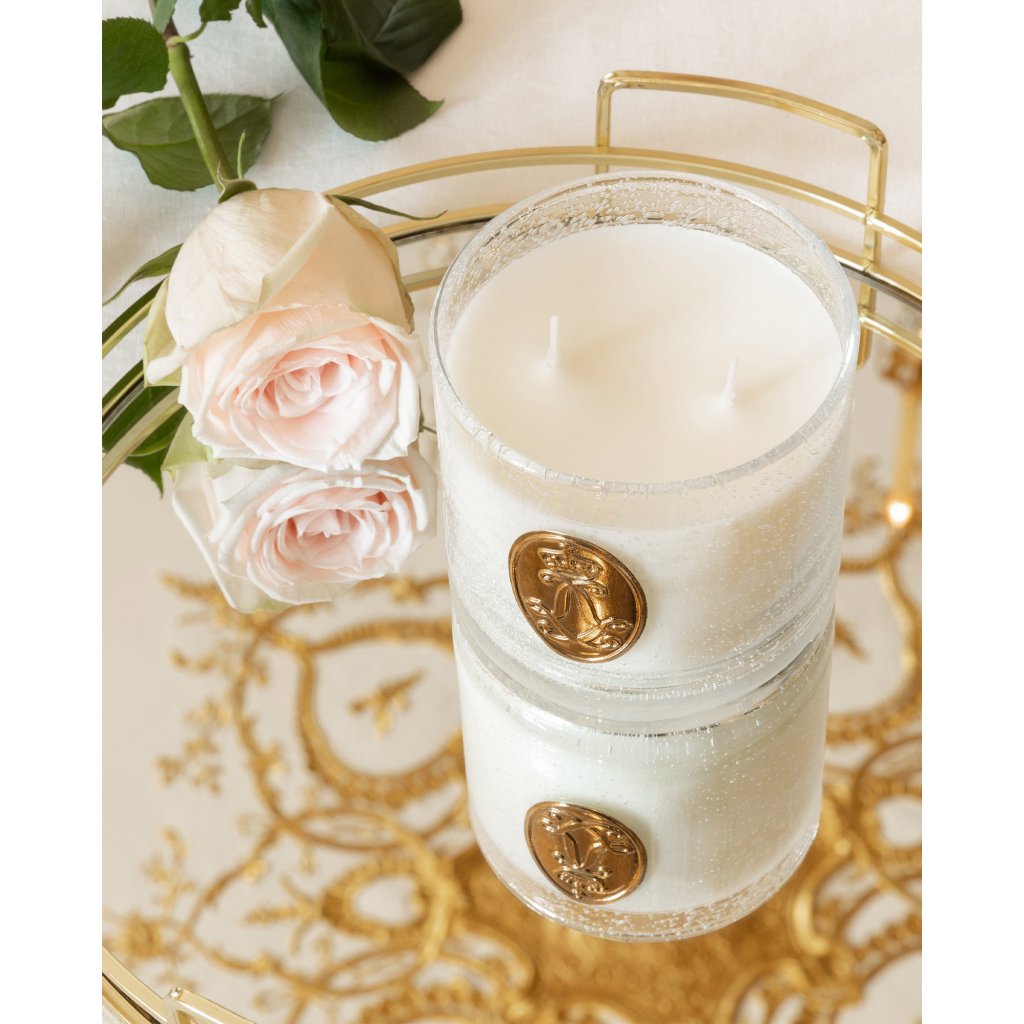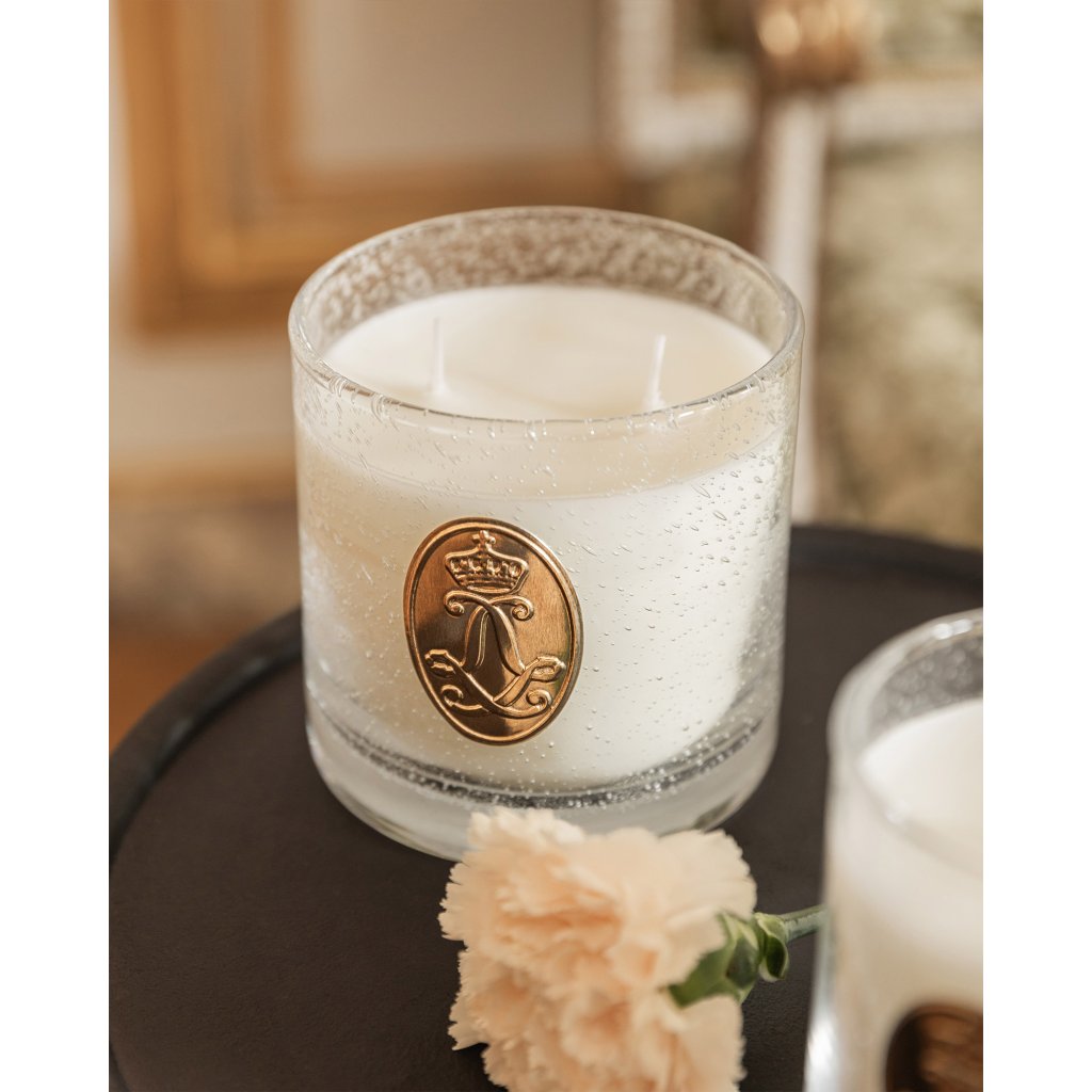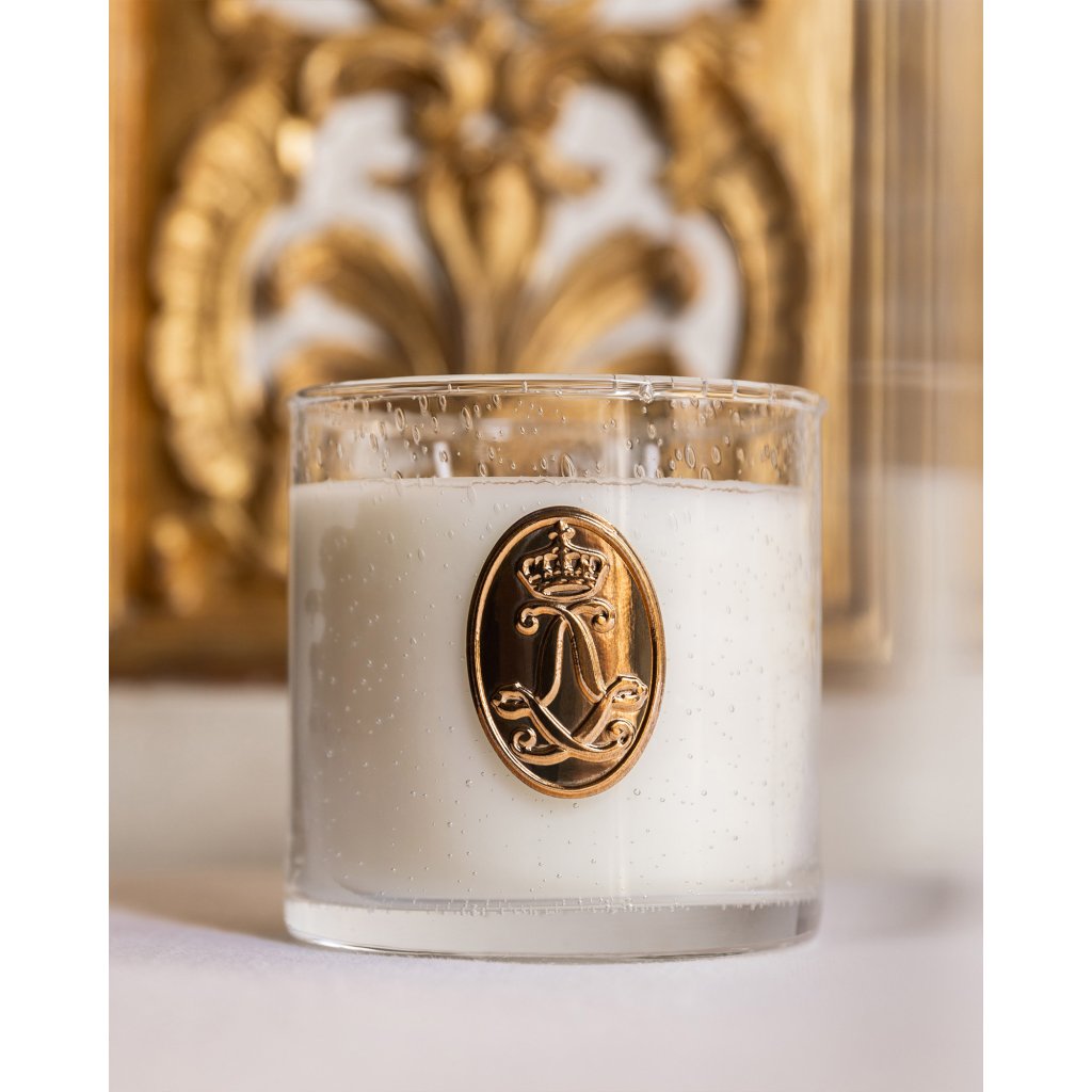 Vstupte do světa přepychu a noblesy s exkluzivní svíčkou, vyrobenou ručně v duchu nejlepších tradic svíčkařů v západofrancouzském městě Cugand. Svíčka s oficiální licencí zámku Château de Versailles se směsí minerálního a rostlinného vosku vyniká bohatým a přitom jemným aroma niche parfému z dílny renomované francouzské parfumérky Cécile Zarokian. Výjimečná vzhledem i způsobem zpracování je sklenice ze speciálního bublinkového skla, která je vyrobena ručně ve francouzském Cannes a která se nádherně rozzáří plápolajícím světlem plamínků. Zlatá kovová pečeť s monogramem krále Ludvíka XIV. v podobě dvojitého propleteného LL zakončeného královskou korunkou, symbolem moci, je už jen třešničkou na pomyslném dortu. Každá svíčka Château de Versailles je originál, úhledně zabalený v elegantní krabičce se zlatou ražbou, kterou je radost otevřít.
