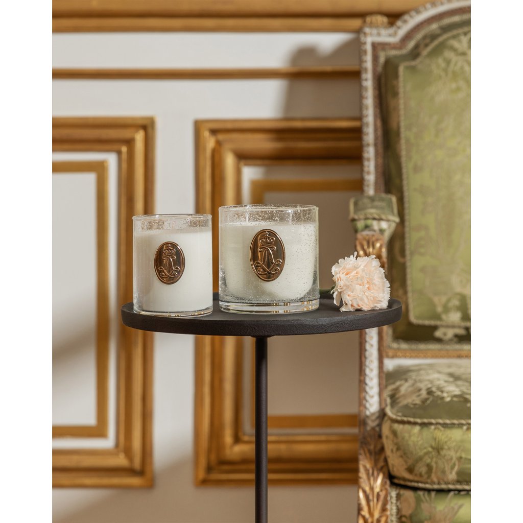 Vstupte do světa přepychu a noblesy s exkluzivní svíčkou, vyrobenou ručně v duchu nejlepších tradic svíčkařů v západofrancouzském městě Cugand. Svíčka s oficiální licencí zámku Château de Versailles se směsí minerálního a rostlinného vosku vyniká bohatým a přitom jemným aroma niche parfému z dílny renomované francouzské parfumérky Cécile Zarokian. Výjimečná vzhledem i způsobem zpracování je sklenice ze speciálního bublinkového skla, která je vyrobena ručně ve francouzském Cannes a která se nádherně rozzáří plápolajícím světlem plamínků. Zlatá kovová pečeť s monogramem krále Ludvíka XIV. v podobě dvojitého propleteného LL zakončeného královskou korunkou, symbolem moci, je už jen třešničkou na pomyslném dortu. Každá svíčka Château de Versailles je originál, úhledně zabalený v elegantní krabičce se zlatou ražbou, kterou je radost otevřít.
