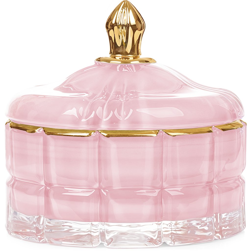 Vneste do svého domova atmosféru doby, kdy elegance byla uměním a každý detail měl svůj význam. Svíčka Art Deco je poctou éře, která oslavovala krásu, styl a smyslnost. Spojuje v sobě nadčasový design s duší ruční práce a vytváří dokonalý doplněk pro interiér, kde se potkává klasika s moderním vkusem. Je zasazena do růžové skleněné nádoby, zdobené zlatými detaily a je dekorativním klenotem, který i po vyhoření zůstává ozdobou interiéru. Po dohoření ji můžete snadno vyčistit a proměnit v šperkovnici, vázu nebo elegantní doplněk.