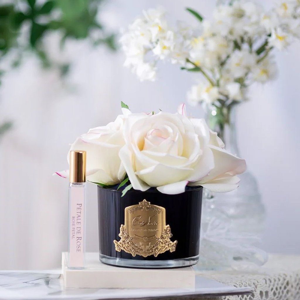 Jak pečovat o parfémovanou kytici Côte NoireStejně jako skutečné květiny i parfémované kytice Côte Noire se odmění dlouhotrvající krásou, pokud jim věnujete péči. Doporučujeme kytici občas opláchnout, abyste odstranili prach z okvětních lístků a udrželi tkaninu, ze které jsou květiny vyrobeny vlhkou. Abyste zabránili vysychání okvětních lístků, pravidelně je postřikujte vodou. Pro oživení vůně používejte parfémy Côte Noire, které jsou testovány aby na květech nezanechali skvrny. Abyste zabránili vyblednutí nebo zežloutnutí, neumísťujte parfémovanou kytici Côte Noire na přímé sluneční světlo. |