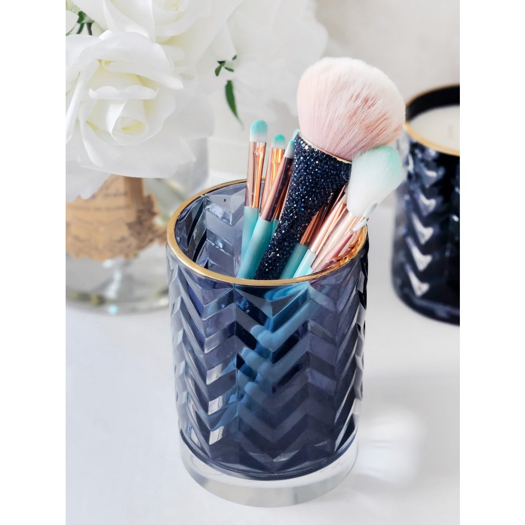 - elegantní modrá váza se zlatým lemováním a reliéfním vzorem Herringbone