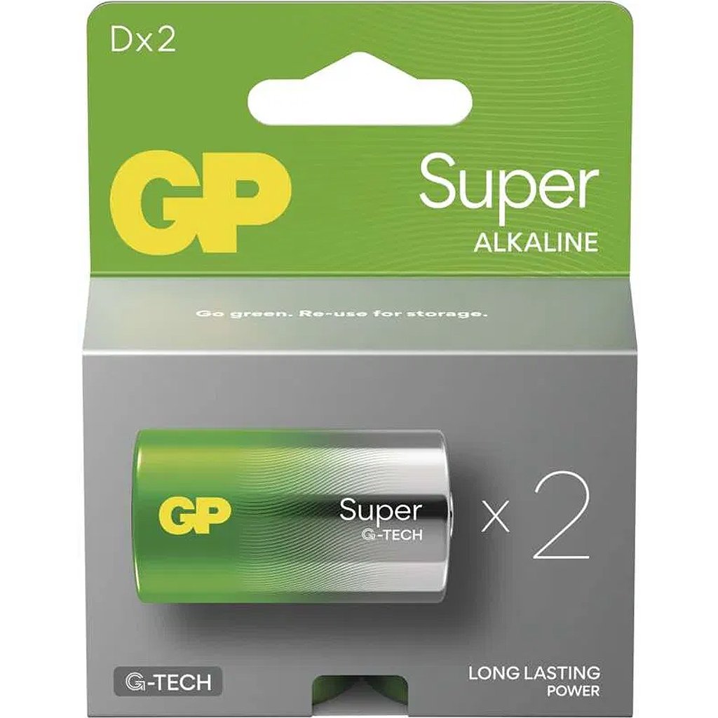 Získejte čas navíc s jednorázovými alkalickými bateriemi GP Super D. Ty jsou vybaveny průlomovou technologií G-TECH, která bateriím propůjčí větší výkon oproti běžným alkalickým bateriím. GP Super D zajistí dlouhotrvající a spolehlivý výkon napájených zařízení. Baterie typu D jsou vhodné pro použití v hračkách, rádiích či svítilnách. Alkalické baterie GP Super D se stanou ideálním pomocníkem pro dodání potřebné energie. Součástí balení jsou 2 kusy jednorázových baterií typu D (LR20).