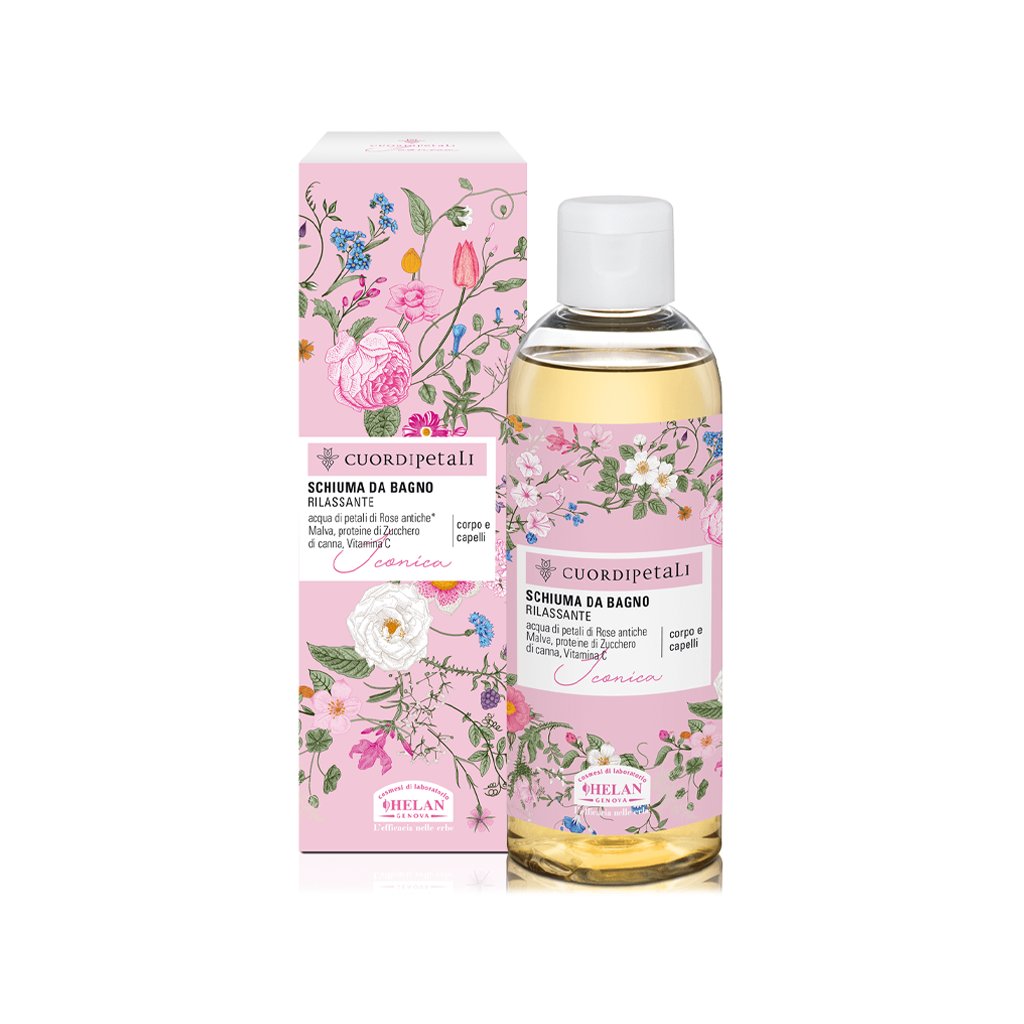Luxusní pěna do koupele Iconica z kolekce Cuor di Petali italského výrobce Helan vhodná k šetrnému mytí těla a vlasů nebo jako relaxační prostředek pro uklidňující koupel. Extra bohatá a intenzivně parfémovaná receptura s prémiovými přírodními surovinami vhodná i pro citlivou pokožku. Pečlivě zvolené ingredience s růžovým olejem a extraktem slézu pro sametově hebkou pokožku, vyživenou a hydratovanou. Proteiny třtinového cukru pro sílu a pružnost vlasů. Praktická dóza s víčkem opatřená etiketou s krásnými květinovými motivy.