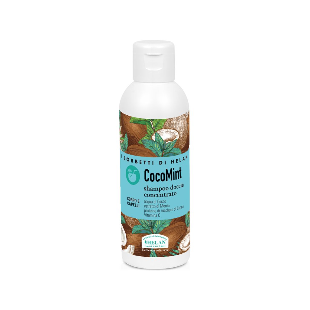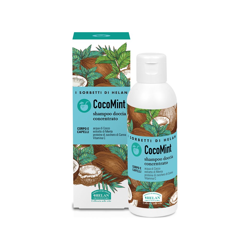 Luxusní sprchový gel a šampon 2v1 CocoMint z kolekce Sorbetti italského výrobce Helan vhodný k šetrnému mytí pokožky a vlasů. Jemná a lehká receptura s prémiovými přírodními surovinami a vitamínem C vhodná i pro citlivou pokožku. Pečlivě zvolené ingredience s kokosovou vodou a extraktem z máty pro pokožku vyživenou, hydratovanou a voňavou. Proteiny třtinového cukru pro sílu a pružnost vlasů. Praktická dóza opatřená etiketou s ovocnými motivy pro oživení a rozveselení koupelny.