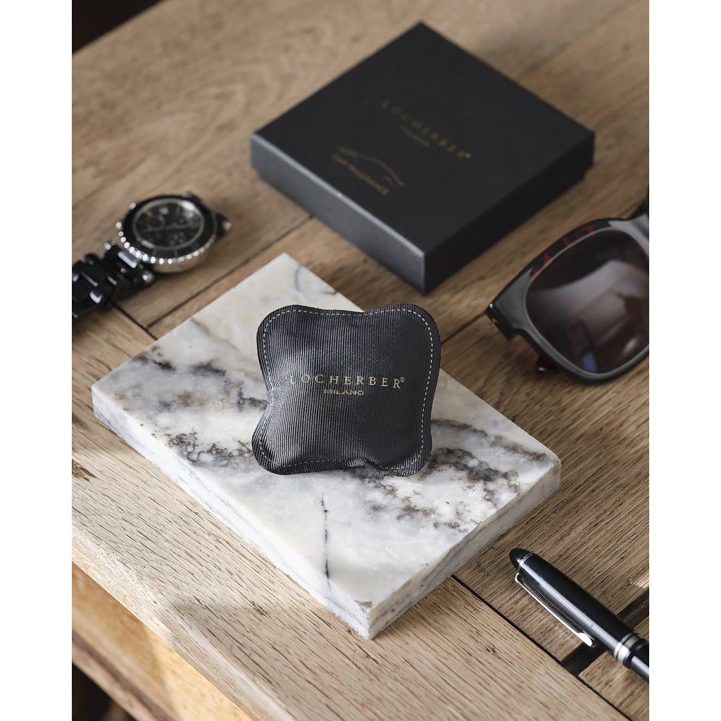 Elegantní vůně do auta italského výrobce Locherber Milano ve tvaru textilního polštářku se připevňuje pomocí plastového klipu na výdech ventilace a provoní interiér po dobu 3 až 4 týdnů. Balena v atraktivní dárkové krabičce s víkem.