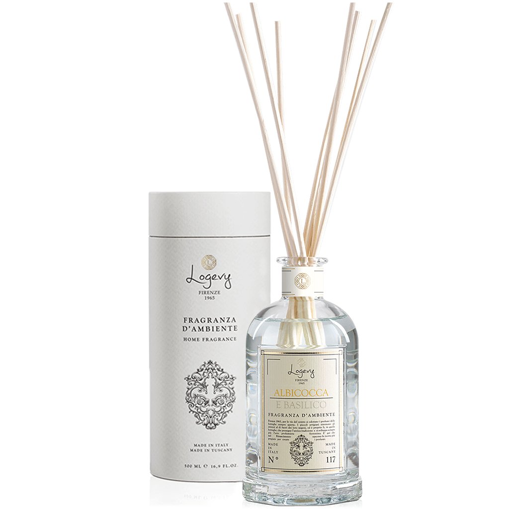 Luxusní difuzér s tyčinkami Logevy Firenze 1965 charakterizuje prvotřídní parfém z pečlivě vybraných surovin nejvyšší kvality a design vyzařující eleganci a noblesu. Do skleněné nádoby stačí vložit přiložené tyčinky a vůně se začne uvolňovat do prostoru.