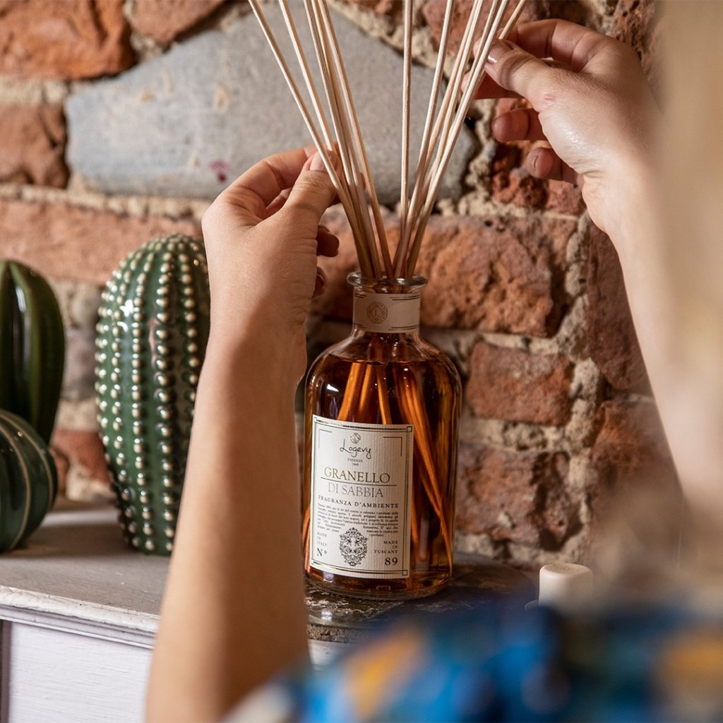- tyčinkový difuzér s interiérovým parfémem Granello di Sabbia zvolené velikosti