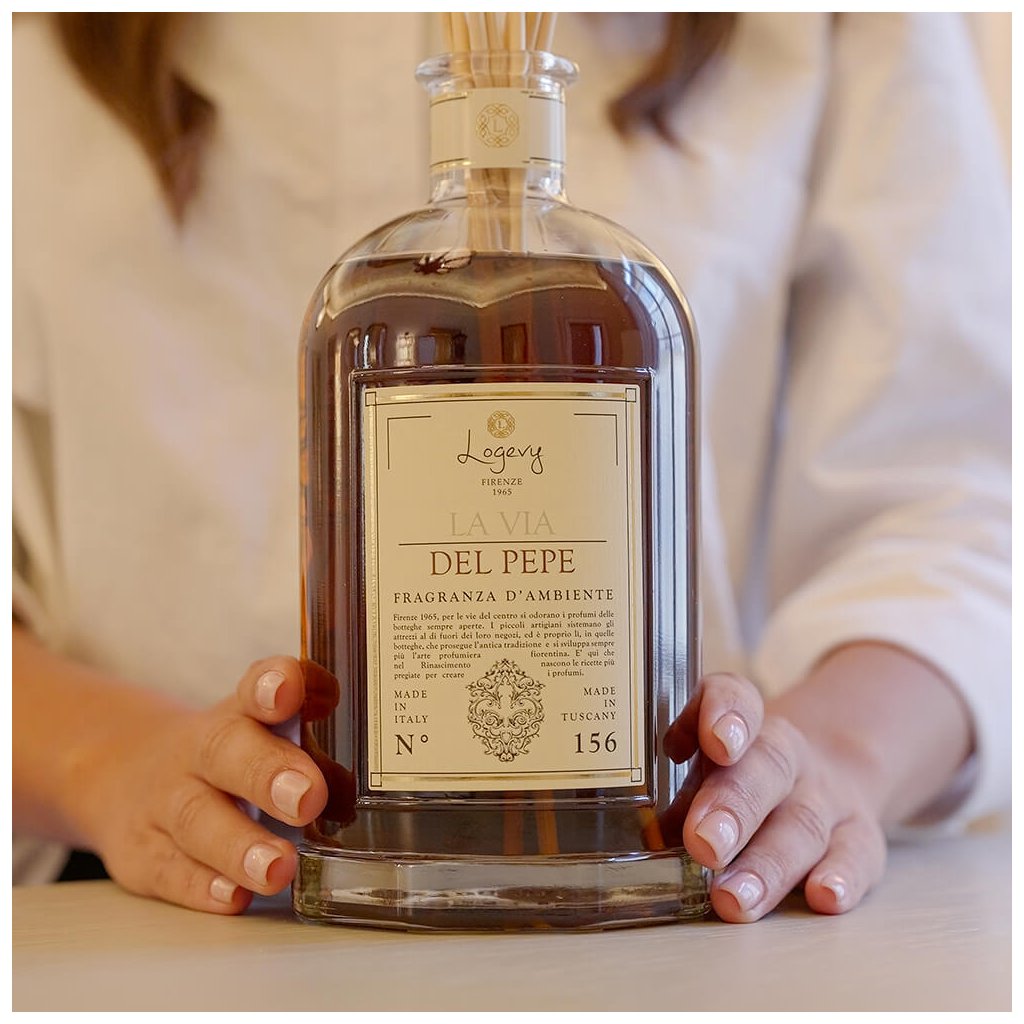 Difuzér Logevy charakterizuje prvotřídní parfém, který je ztělesněním absolutního vrcholu tradiční florentské umělecké parfumerie. Mistrovské dílo parfuméra Stefana Cintelliho nese jeho osobní signaturu jako záruku autentičnosti a kvality. Ikonický osmihranný flakon, inspirovaný baptisteriem sv. Jana Křtitele, vzdává hold florentské architektuře. Difuzér v sobě zrcadlí ryzí italskou eleganci Made in Tuscany a interiéru propůjčuje sebevědomou, nezaměnitelnou přítomnost.
