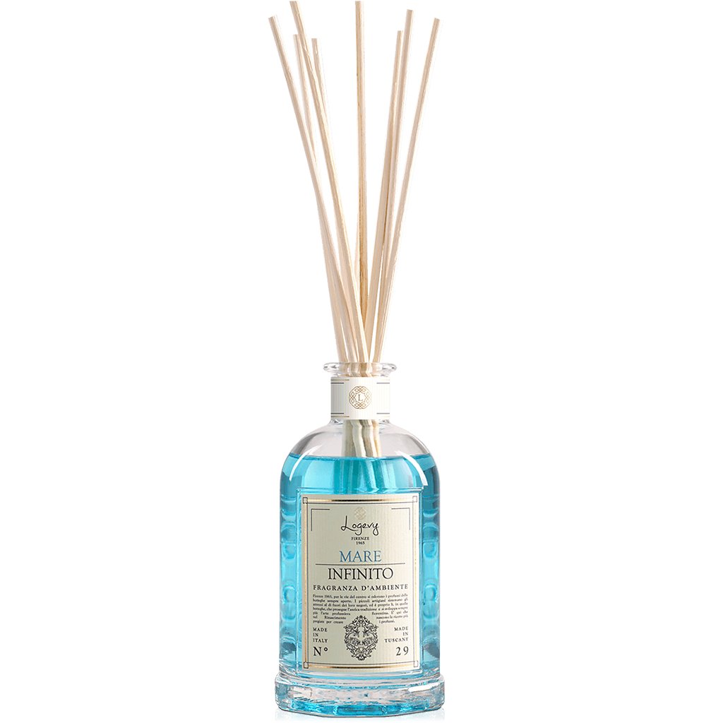 | "Mare Infinito je vůně svěžesti, volnosti a svobody, u které Vám radostí poskočí srdce. Tato vůně vás přenese na palubu jachty uprostřed tyrkysového moře, kde zažijete nezapomenutelný zážitek. Už při prvním okamžiku ucítíte lahodný nádech středomořských bylinek, harmonicky prolínajících se s osvěžujícími tóny mořského vánku. Postupně se pak unášíte do objetí uklidňujících dřevin, nesoucích s sebou něžné pohlazení vanilky a pižma. Vzniká tak luxusní a zároveň lehký parfém, který se výtečně hodí do moderních a nadčasových interiérů. Pokud si nejste jisti, kterou vůní od Logevy zvolit, rozhodně začněte právě s touto mistrovskou kreací. Mare Infinito v sobě nese záblesk slunce, vánek moře a pohodovou atmosféru, která si získá srdce každého." – Iveta |