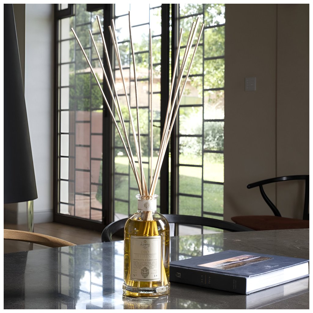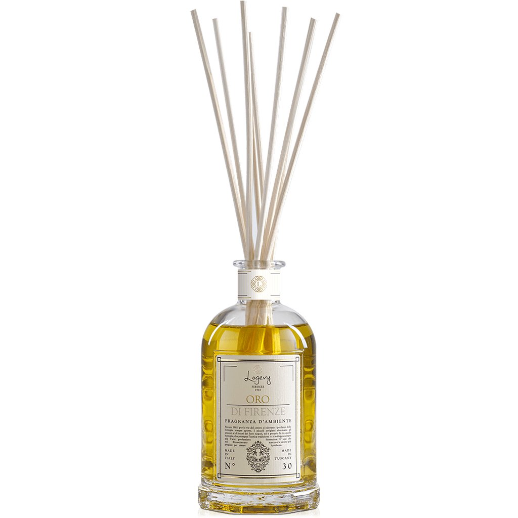 Luxusní aroma difuzér s tyčinkami Logevy Firenze 1965 charakterizuje prvotřídní parfém z pečlivě vybraných surovin nejvyšší kvality a design vyzařující eleganci a noblesu. Do skleněné nádoby stačí vložit přiložené tyčinky a vůně se začne uvolňovat do prostoru. Vyrobeno s hrdostí v Toskánsku.