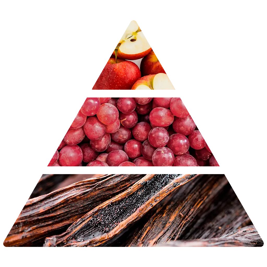 Moderní interpretace renesanční vášně, která v sobě nese intenzivní tóny červeného vína. Sladký akcent zralého ovoce se v srdci mistrně snoubí s plností červených hroznů toskánských vinic. Tato harmonická vůně přirozeně pozvedá interiér a propůjčuje mu exkluzivní a hřejivý charakter.