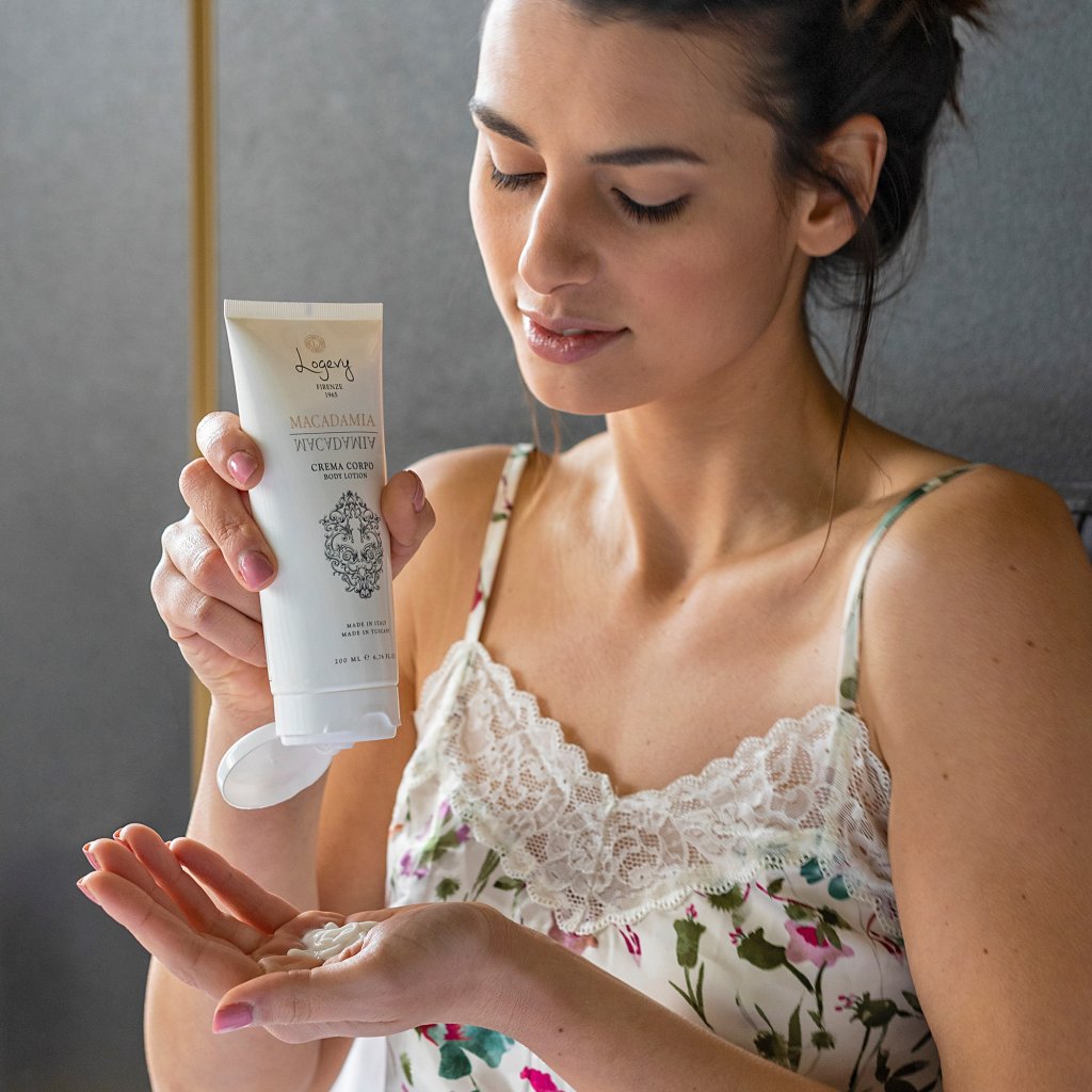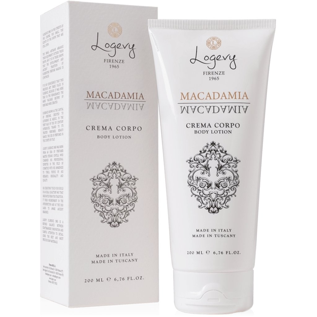 Užijte si dokonalou péči s luxusním tělovým mlékem Macadamia od Logevy Firenze 1965 a dopřejte své pokožce neobyčejný zážitek. Kombinace ingrediencí nejvyšší kvality zajišťuje zářivě krásnou a zdravou pleť s dokonalou výživou, ochranou a hydratací. Lehká konzistence se rychle vstřebává, takže se můžete ihned obléknout bez pocitu mastnoty. Jemné složení je zcela nedráždivé a vhodné pro všechny typy pleti, včetně suché a citlivé.