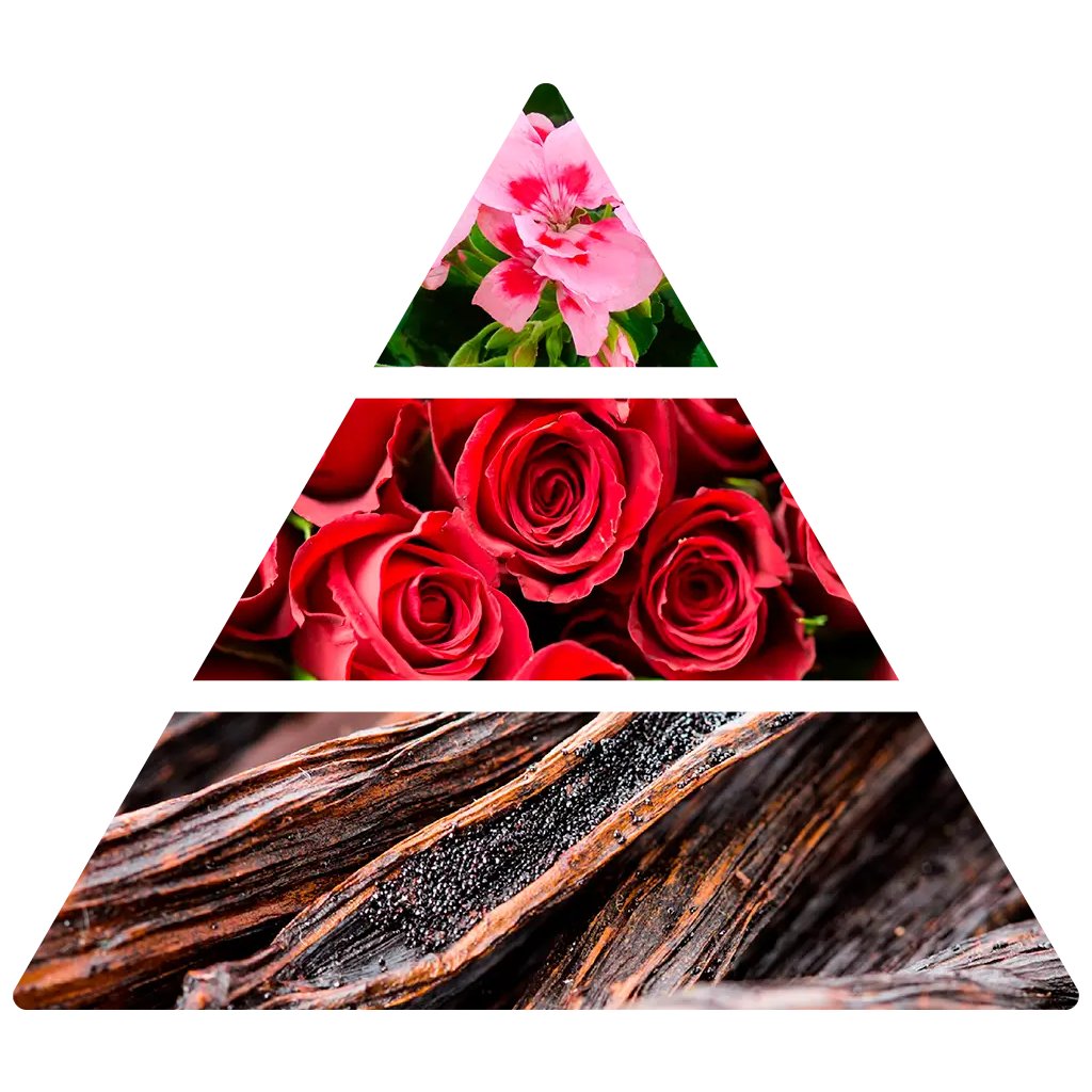 Základ – santalové dřevo, tonka boby, vanilka, cedrové dřevo a bílé pižmo
