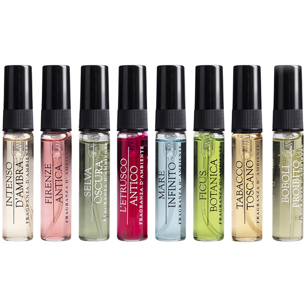 Vzorník obsahuje 19 interiérových parfémů Logevy Firenze 1965, které jsou určeny k provonění domácnosti, kanceláře nebo auta a především k vyzkoušení vůně. Stačí je aplikovat do prostoru nebo na bytový textil. Vůně si tak vyzkoušíte v pohodlí domova bez rušivých vlivů okolí a snadno se rozhodnete, zda si je pořídíte v provedení difuzéru, náplně nebo interiérového spreje.