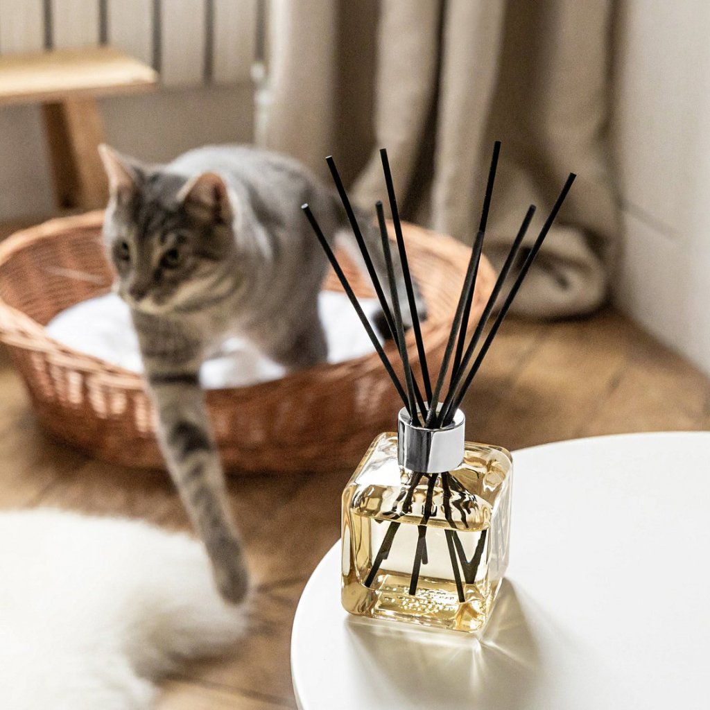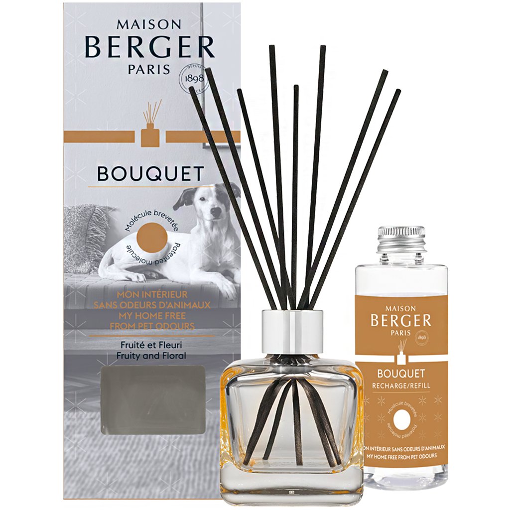 Elegantní difuzér proti pachům domácích mazlíčků z kolekce Anti Odour francouzského výrobce Maison Berger Paris s půvabnou stříbrnou koncovkou, kyticí černých tyčinek a náplní s interiérovým parfémem v ovocně květinové vůni. Nadčasový tvar kostky, který se hodí do všech typů interiérů, spolu s průhledným sklem podtrhují jednoduchou krásu a čistý minimalistický design.