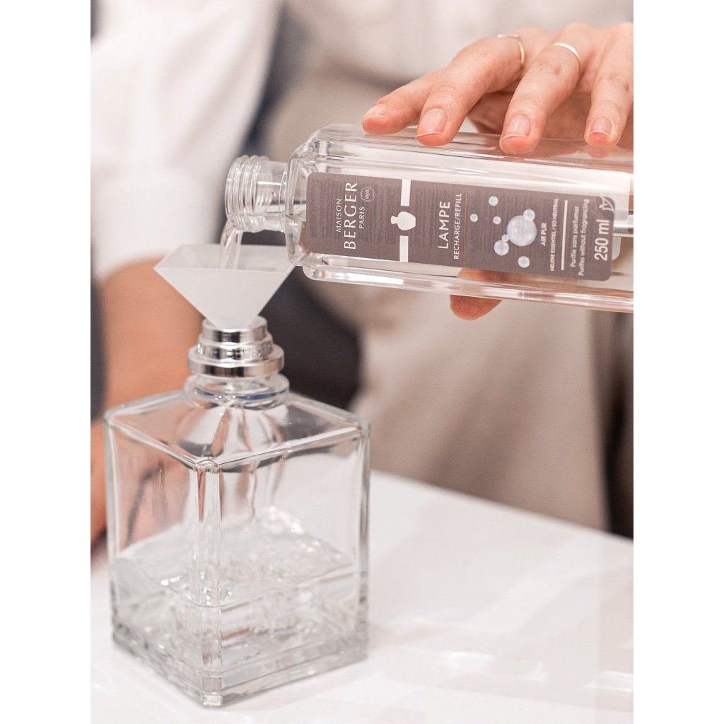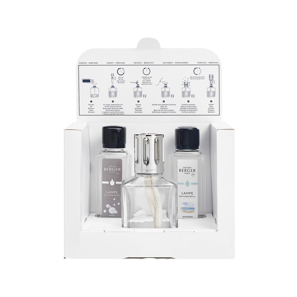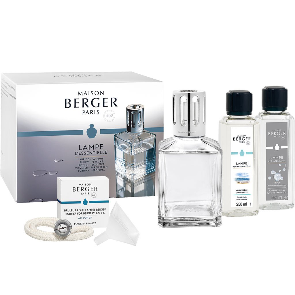 Sada Essential pro snadný úvod do světa interiérových parfémů a katalytických lamp od francouzské značky Maison Berger Paris obsahuje celosvětově nejprodávanější katalytickou lampu Cube z čirého skla s masivní stříbrnou korunkou, náplň se svěží vůní Ocean Breeze (Mořský vzduch), neparfémovanou náplň So Neutral (Neutrální) a kompletní příslušenství včetně zaslepovacího víčka, plnícího trychtýře a kahanu s bavlněným knotem. Vše pečlivě zabaleno a připraveno k okamžitému použití a provonění interiéru.