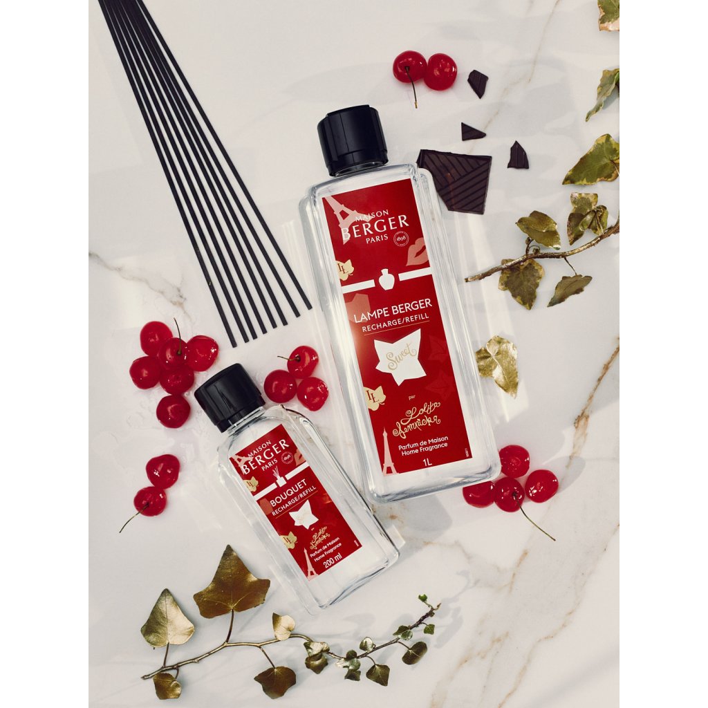 Je to chuť rtů, které se právě zakously do šťavnaté třešně ponořené do sametově hořké čokolády. Vůně, která provokuje i svádí a okamžitě zvedne náladu. Gurmánský zážitek, sladký jako polibek, je ódou na ženskost, plný smyslnosti a lehké drzosti. Probouzí touhu podlehnout pokušení a zahaluje interiér do lahodné, návykové a hřejivě uklidňující atmosféry.