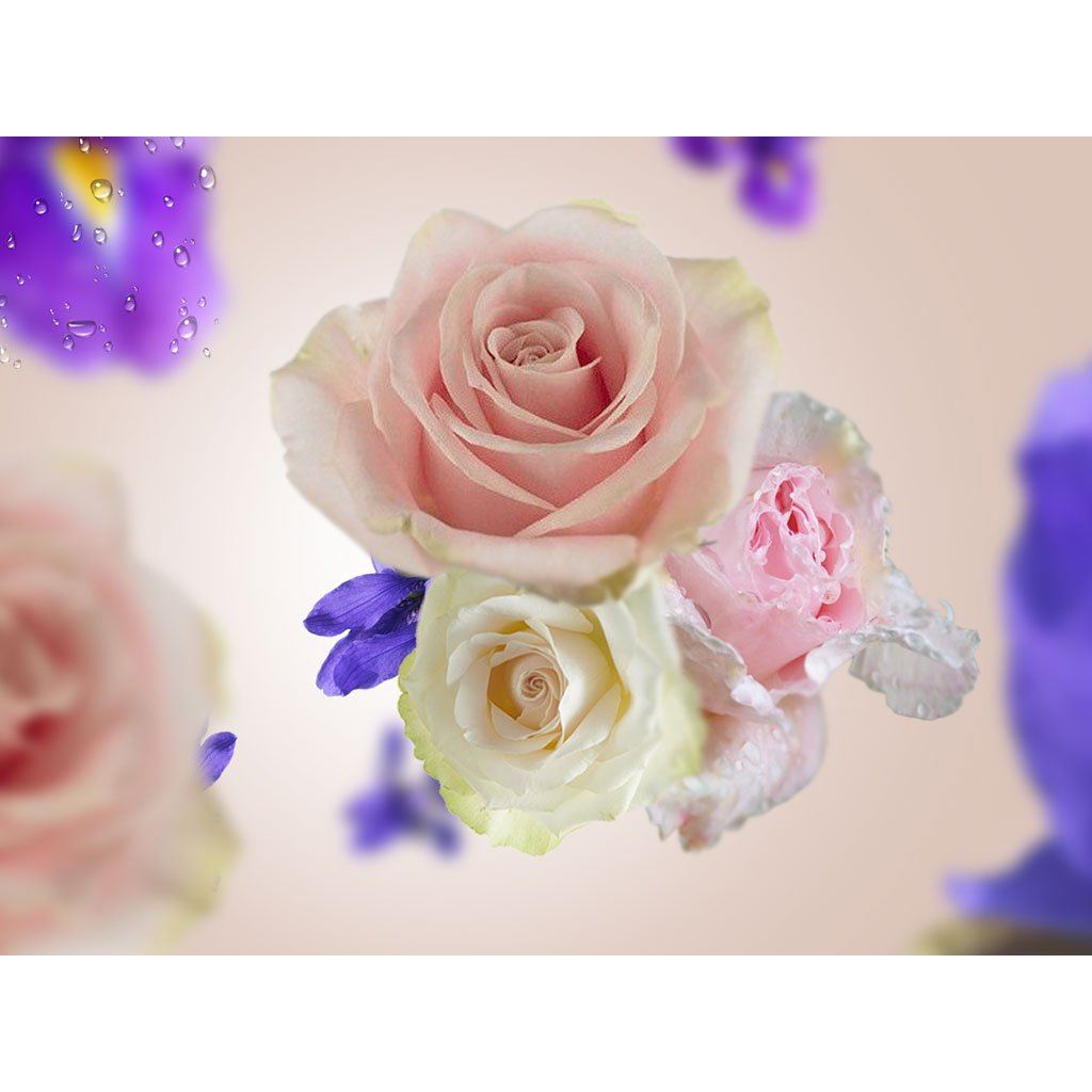 Srdce – kosatec, růže a fialka
