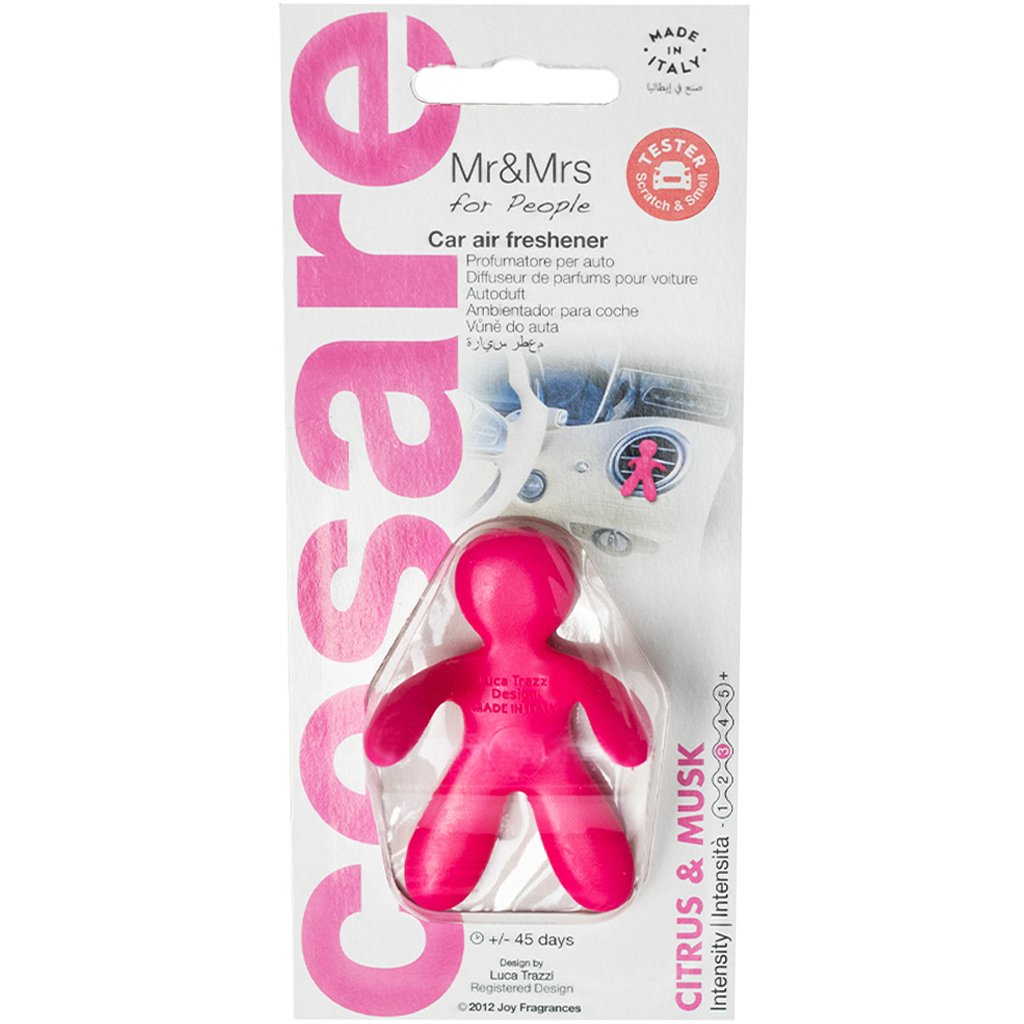 Tenhle stylový panáček od italských mistrů Mr&Mrs Fragrance je ztělesněním identity, svobody a osobitého stylu. Se svým ikonickým designem a široce rozevřenou náručí, kterou doslova obejme mřížku ventilace, dodá interiéru vašeho vozu nezaměnitelný charakter a šmrnc. CESARE není jen osvěžovač do auta, je to váš tichý společník s postojem. Dejte mu prostor a on vám ho vrátí úsměvem a voňavým objetím.