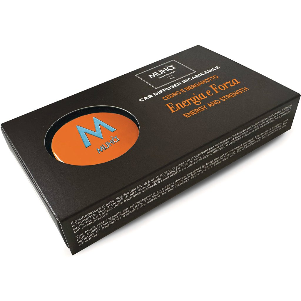 Provoňte každý kilometr s italskou vůní do auta Muhà v provedení medailonu potaženém lesklou ekokůží s vyměnitelnou náplní. Stačí odšroubovat víčko, vložit náplň a připevnit klipem na výdech ventilace. Milý dárek pro rodinu i přátele, nebo prostě jen tak, pro radost sobě.