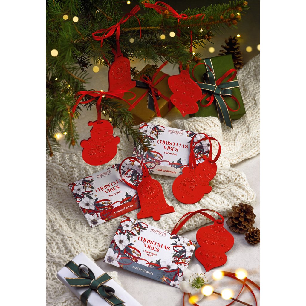 Vonná karta Nasoterapia ve tvaru roztomilé baňky voní jako samotné Vánoce a krásně ozdobí váš stromeček nebo domov během svátků. Díky stužce ji snadno zavěsíte kamkoliv, nebo ji můžete volně vložit mezi prádlo, do sportovní tašky či interiéru auta, aby kolem sebe šířila hřejivou sváteční náladu. Zabalena v krásném dárkovém balení s vánočními motivy se také stane milým a originálním vánočním dárkem.