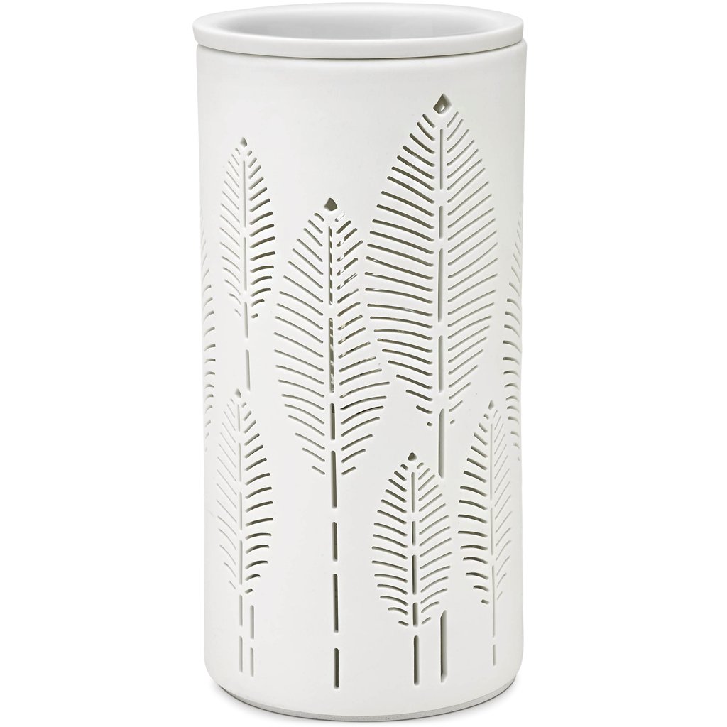 Evaporační difuzér Laurus s motivy vavřínových listů rozptyluje esenciální oleje do prostoru bez přidání vody a pouze působením tepla žárovky. Je bezpečný i v přítomnosti dětí či domácích mazlíčků a ideální do kanceláře nebo míst, kde nechcete používat oheň či hrozí rozlití. Elegantní provedení z keramiky včetně odnímatelné nádoby pro snadné čištění z něj dělá stylový doplněk, který spolu s vůní a tlumeným světlem navodí příjemnou atmosféru.
