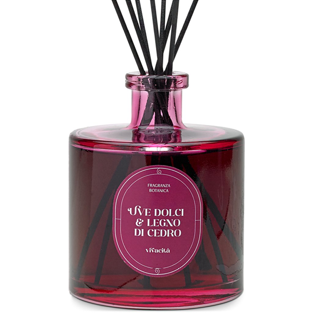 Luxusní tyčinkový difuzér Nasoterapia přináší vůni sladkých hroznů a vzácného dřeva. Jednoduchý design skleněné nádoby snadno splyne s jakýmkoliv interiérem a vnese do něj nádech elegance. Tyčinky z textilního vlákna po vložení do nádoby rychle absorbují náplň a téměř okamžitě uvolňují vůni do prostoru.