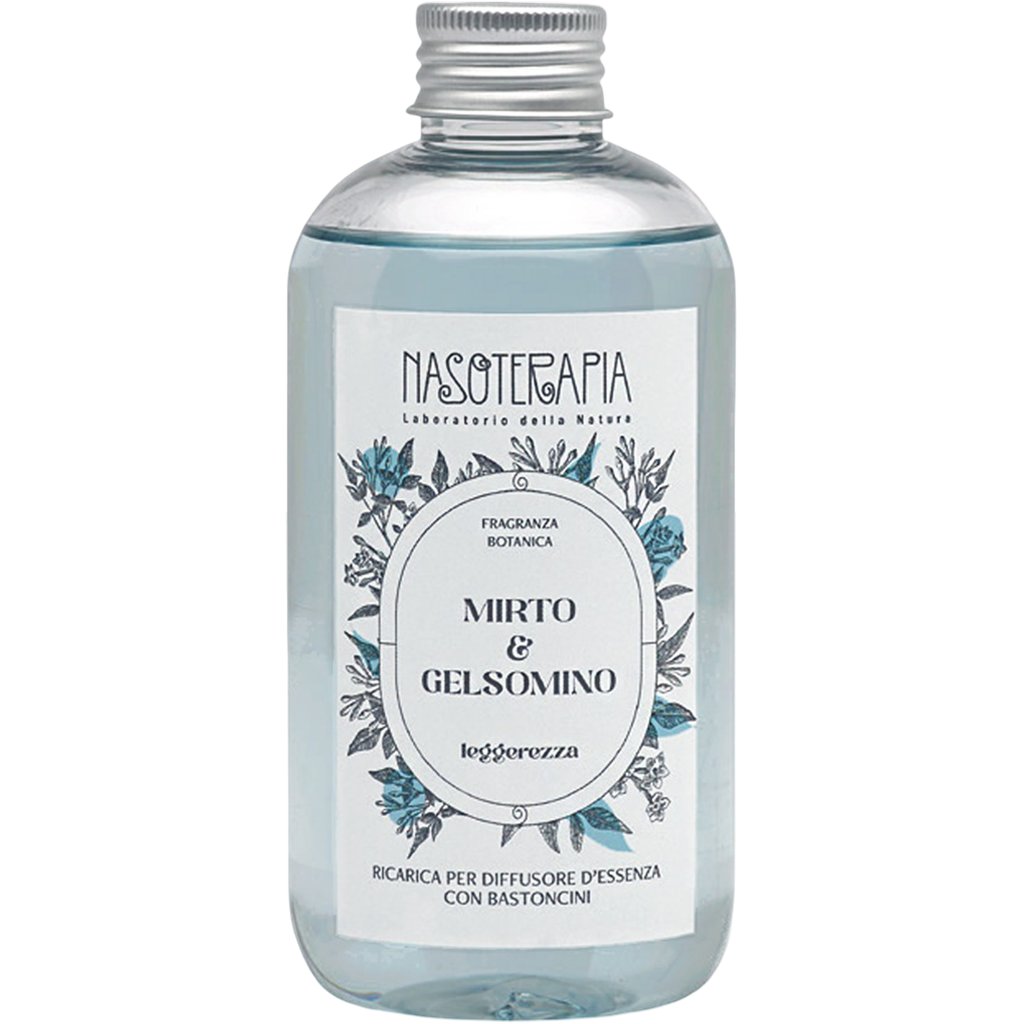Náhradní náplň do difuzéru s tyčinkami Nasoterapia se svěže květinovou vůní myrty a vodního jasmínu. Při změně náplně stačí prázdnou nádobu vypláchnout teplou vodou a vložit nové tyčinky, které nejsou součástí balení. Pro optimální rozptýlení vůně použijte originální tyčinky Nasoterapia.