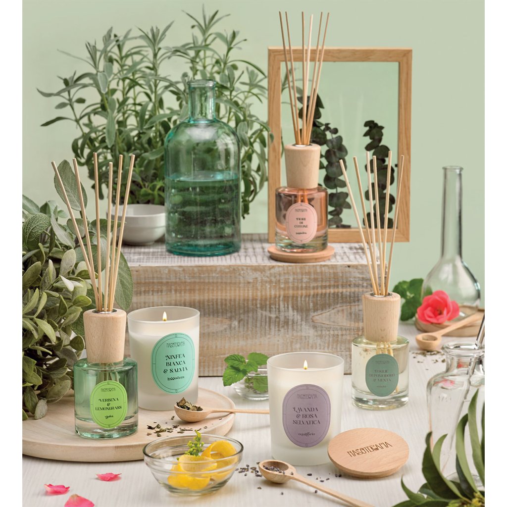 Italská značka Nasoterapia vyniká důrazem na přírodní ingredience, kvalitní materiály a stylový design. V jejím bohatém sortimentu najdete vše pro aromaterapii a provonění interiéru – od oblíbených difuzérů s tyčinkami, moderních elektrických difuzérů a esenciálních olejů až po vonné svíčky, vůně do auta, tělové oleje, náplně do katalytických lamp, osvěžovače vzduchu a textilií, vonné karty, inhalační tyčinky a další.
