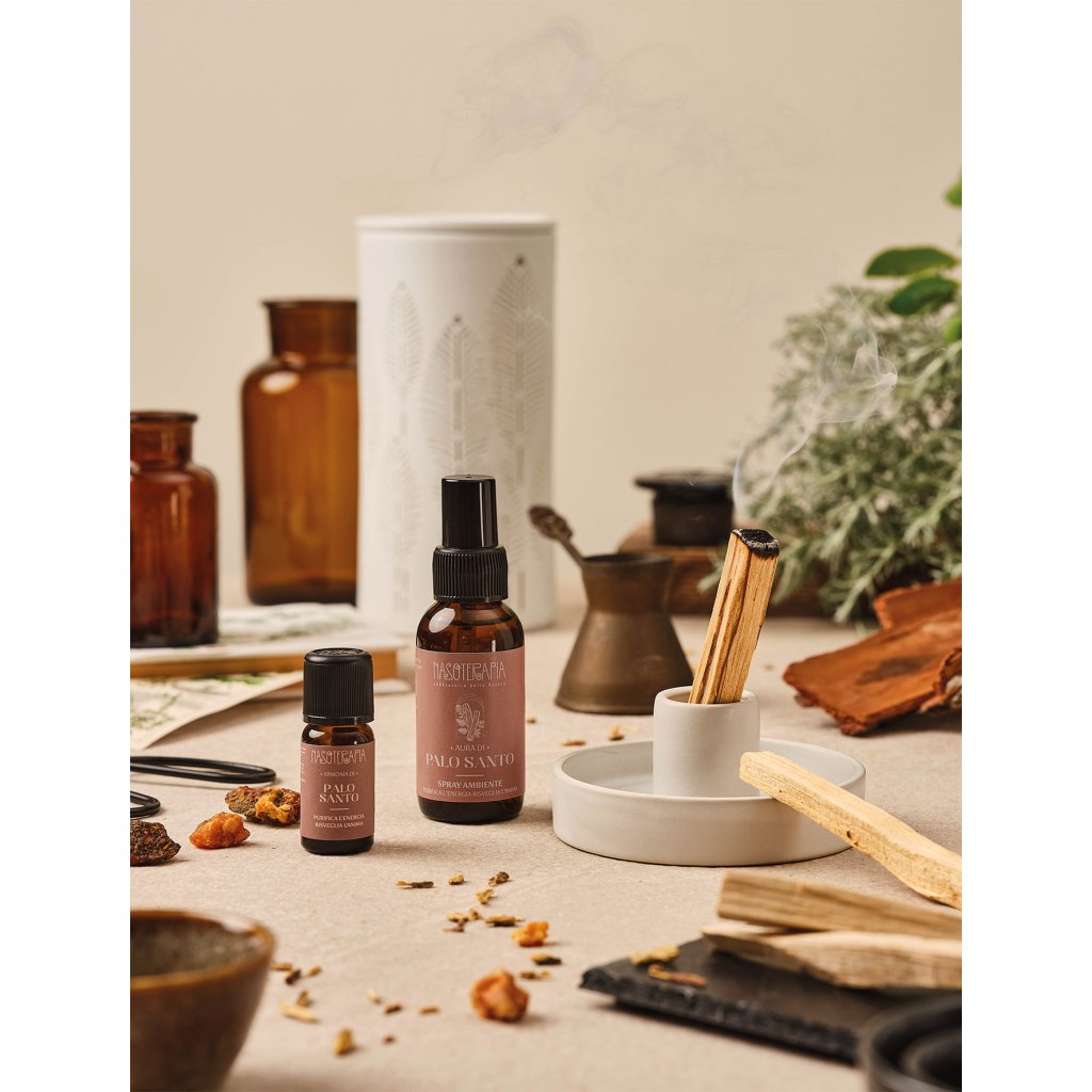 Palo Santo pochází ze stromů Bursera graveolens rostoucích v Jižní Americe. Tyto vzácné stromy žijící 80 až 90 let přirozeně dozrávají až po odumření, kdy jejich jádrové dřevo nasákne pryskyřicí bohatou na velmi silný esenciální olej. Proto se zbytečně nekácejí a sbírají se ručně pouze spadlé kmeny a větve. Domorodé kmeny uctívají Palo Santo po tisíciletí pro jeho léčivé a očistné účinky. Esenciální olej využívají k urychlení hojení ran a ošetření kůže po štípnutí hmyzem, na duševní úrovni pak k podpoře hlubokého uvolnění při meditaci, rozjímání a dosažení celkové harmonizace těla i mysli. Kouřem z vykuřovacího dřeva očišťují prostor od negativních energií před vlastním obřadním rituálem, podobně jako se používá kadidlo a myrha. V naší kultuře si Palo Santo nachází stále větší oblibu jako součást rituálů péče o sebe, které přinášejí vnitřní klid a duševní pohodu.
