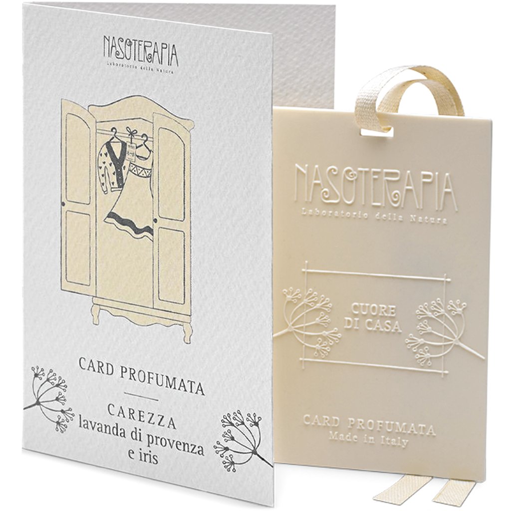 Vonná karta Nasoterapia dlouhodobě provoní šatní skříň, zásuvky s prádlem, botník, sportovní tašku, zavazadlo nebo interiér auta. Pomocí stuhy ji lze zavěsit, nebo volně vložit mezi prádlo. Skvěle poslouží také pro vyzkoušení vůně, nebo jako drobný dárek pro každou příležitost.