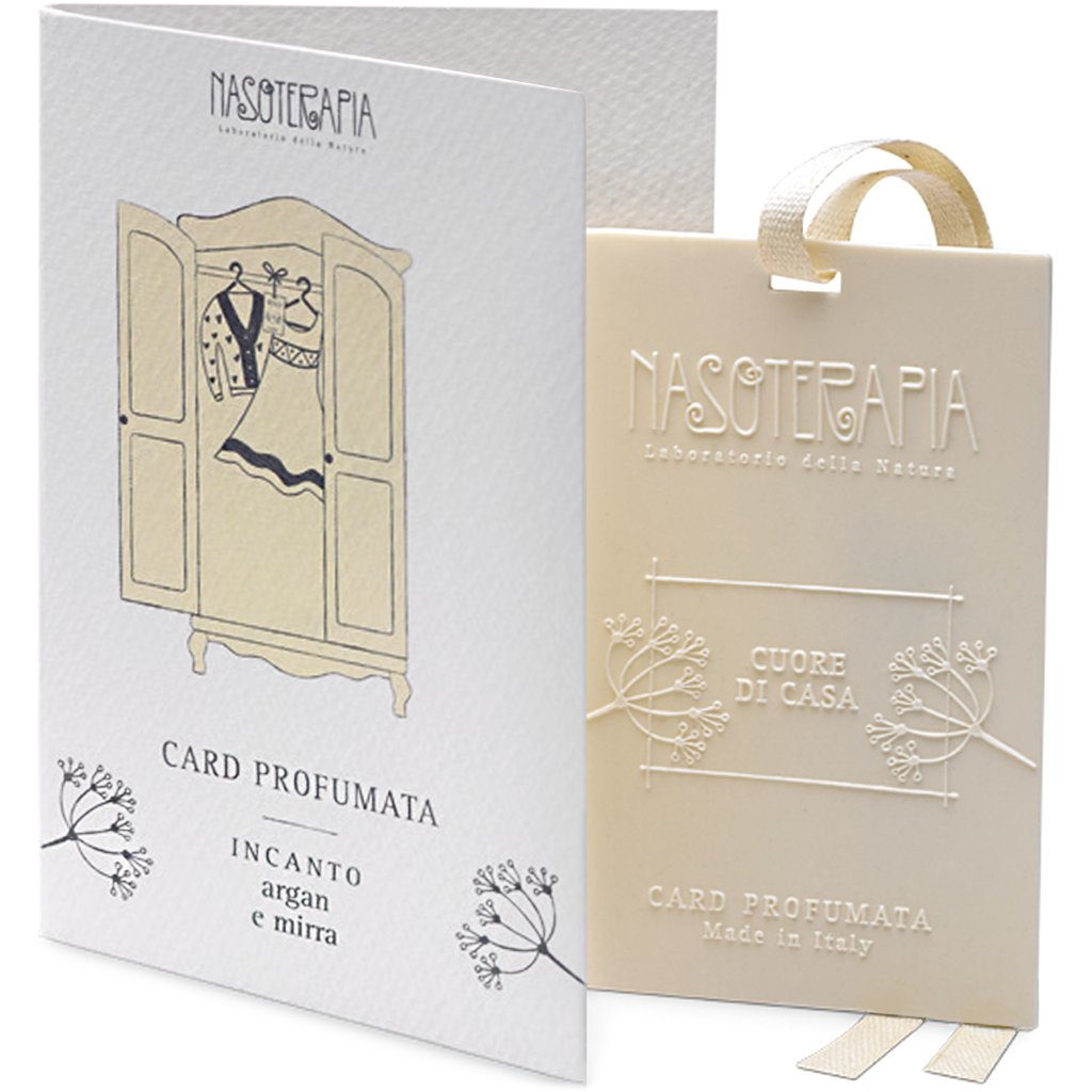 Vonná karta Nasoterapia dlouhodobě provoní šatní skříň, zásuvky s prádlem, botník, sportovní tašku, zavazadlo nebo interiér auta. Pomocí stuhy ji lze zavěsit, nebo volně vložit mezi prádlo. Skvěle poslouží také pro vyzkoušení vůně, nebo jako drobný dárek pro každou příležitost.