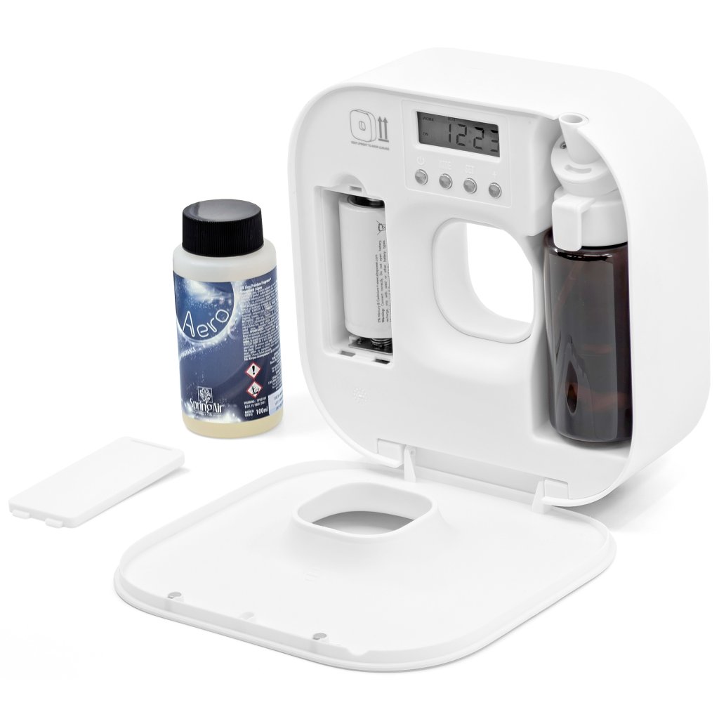 bezdrátový na baterii 1xD • účinnost 40 m² • programovatelný • podsvícený LCD displej • studená difúze Aero Diffusion Technology® • tichý jako šepot 5 dB při dávkování • umístění volně do prostoru • instalace na zeď • bezúdržbový • materiál plast