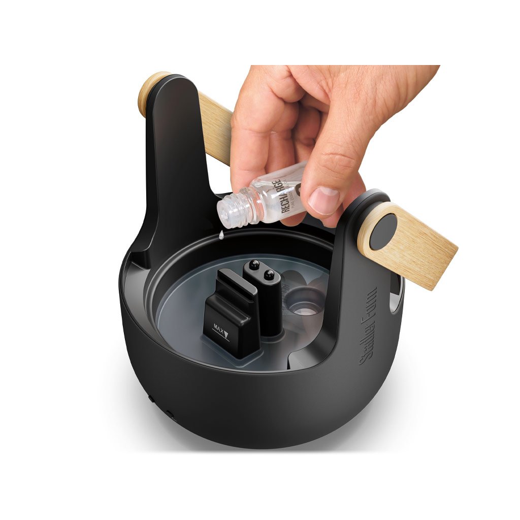 Okouzlující, minimalistický a odolný. Takový je SOPHIE, difuzér vhodný do exteriéru i interiéru. Čiré akrylové sklo a rukojeť z bambusu podtrhují jeho unikátní design z rukou švýcarských designérů. Designový difuzér díky ochraně IP44 nezaskočí voda stříkající z kteréhokoli směru. Na kryté terase či balkoně bude od jara do podzimu exkluzivní dekoraci a během zimy se postará o atmosféru v obýváku. Údržba difuzéru je velmi jednoduchá. Otřete jej zvenčí hadříkem, případně vrchní díl z akrylového skla vložte do myčky nádobí. Na ultrazvukový disk a vnitřní části můžete použít běžný nebo originální odvápňovač Cleaner & Descaler od Stadler Form.