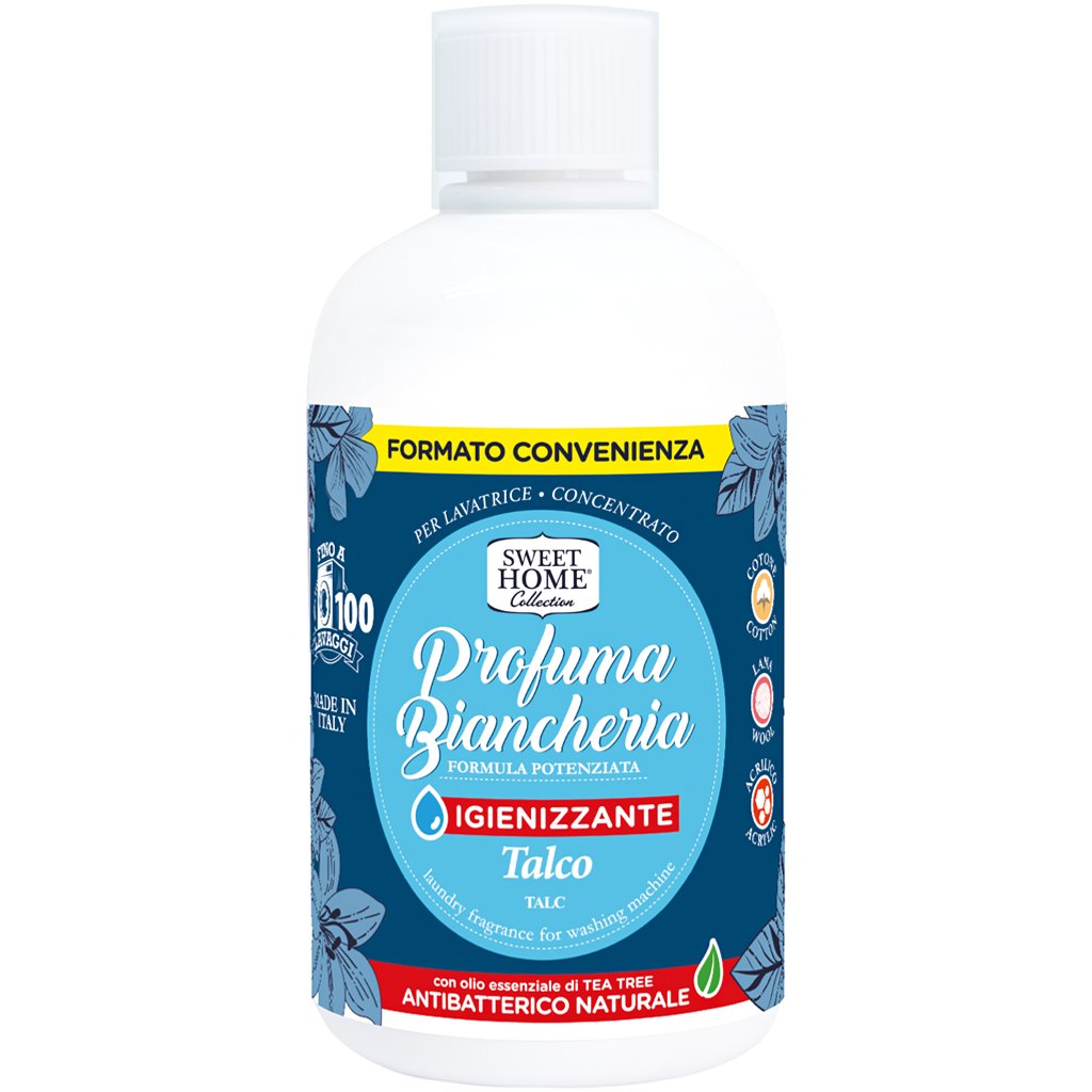 Italský parfém do pračky Sweet Home zanechá prádlo nadlouho voňavé i po vysušení v sušičce a díky antibakteriálnímu účinku esenciálního oleje Tea Tree také hygienicky čisté. Je vhodný na všechny typy textilií a lze jej použít v pračce i při ručním praní. Do pračky nalijte místo aviváže 1 až 2 víčka podle požadované intenzity vůně a pro ruční praní použijte 1 víčko na každých 5 l vody. Při dávkování 1 víčka vystačí balení 250 ml na 35 praní a balení 500 ml na 100 praní.