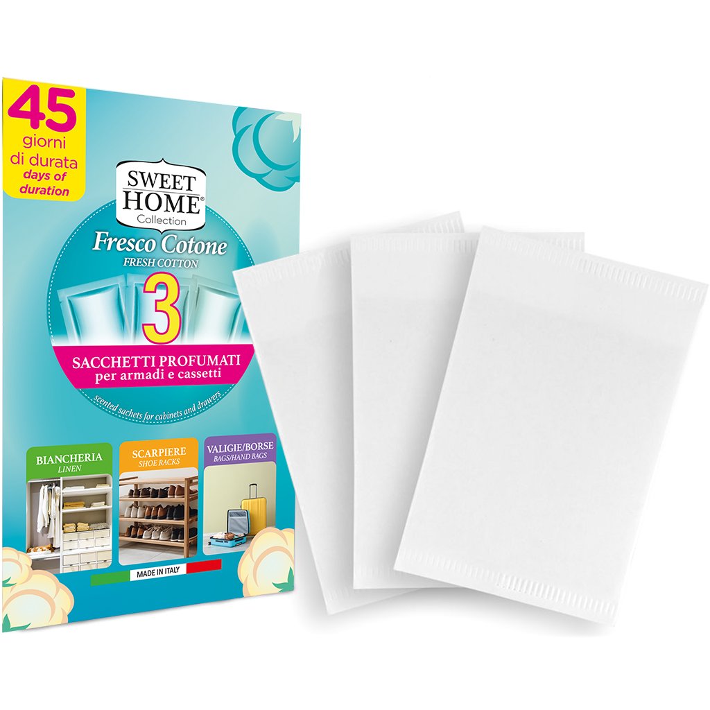 Ekonomicky výhodné balení 3 vonných sáčků z parfémovaného papíru, které se umísťují do šatní skříně, zásuvky s prádlem, cestovního zavazadla či botníku, kde pozvolna uvolňují příjemnou vůni po dobu až 45 dní.