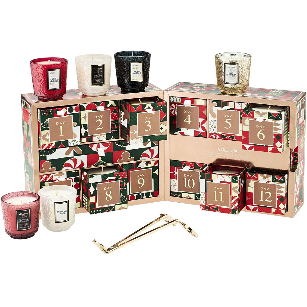 Adventní kalendář obsahuje výběr vůní z kolekcí Japonica a Holiday a je skvělou příležitostí vyzkoušet ty nejoblíbenější od americké značky Voluspa. Zapalte si každý den jinou svíčku a vytvořte v domácnosti atmosféru sváteční pohody, kterou si budete užívat do Vánoc a ještě dlouho poté.