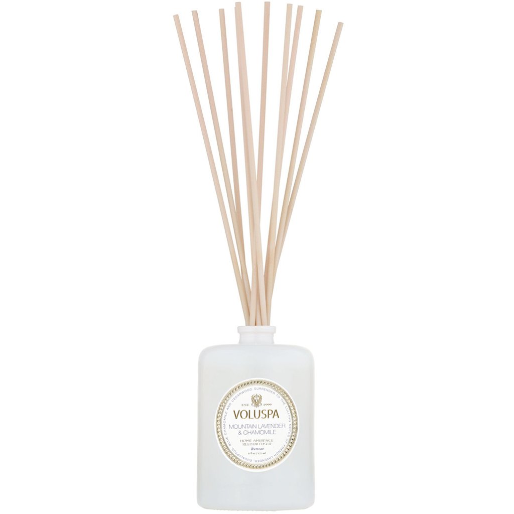 Luxusní difuzér s tyčinkami Voluspa z kolekce Maison Blanc vytvoří příjemně provoněnou atmosféru. Do skleněné nádoby stačí vložit tyčinky a vůně se začne uvolňovat do prostoru. Velikost difuzéru je vhodná k provonění malé a střední místnosti jako koupelna, ložnice nebo obývací pokoj. Baleno v atraktivní dárkové krabičce s ražbou, kterou je radost otevřít.