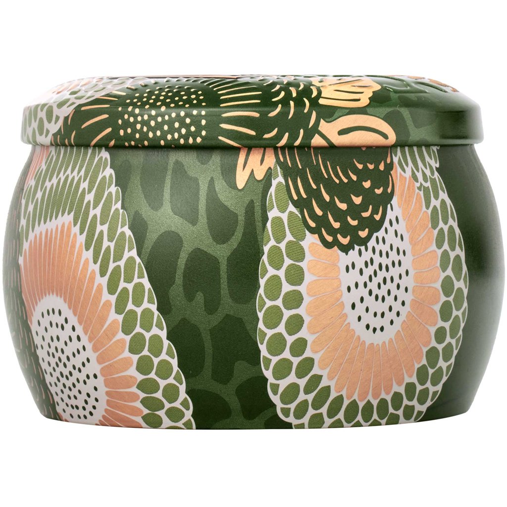 Luxusní vonná svíčka amerického výrobce Voluspa z kolekce Japonica. Kokosový vosk krémově bílé konzistence zachovává při pálení bohaté aroma včetně jemných tónů a zajišťuje čisté hoření. Plechovou nádobu s víčkem zdobí jemný reliéfní motiv s metalickým zlatým potiskem a po vypálení ji lze využít na uložení drobností nebo šperků. Svíčka Mini Tin Candle provoní menší prostor po dobu až 25 hodin a je skvělá pro vyzkoušení vůně nebo jako malý dárek pro každou příležitost.