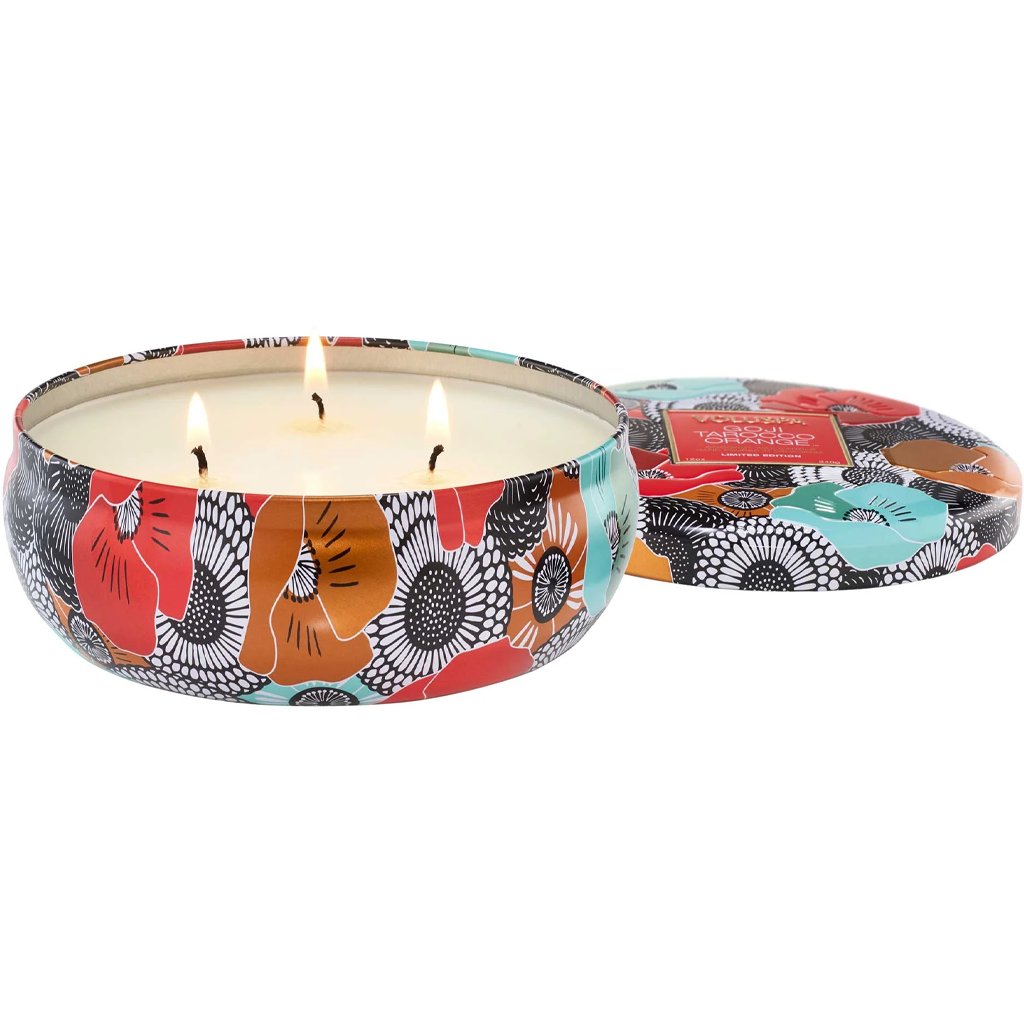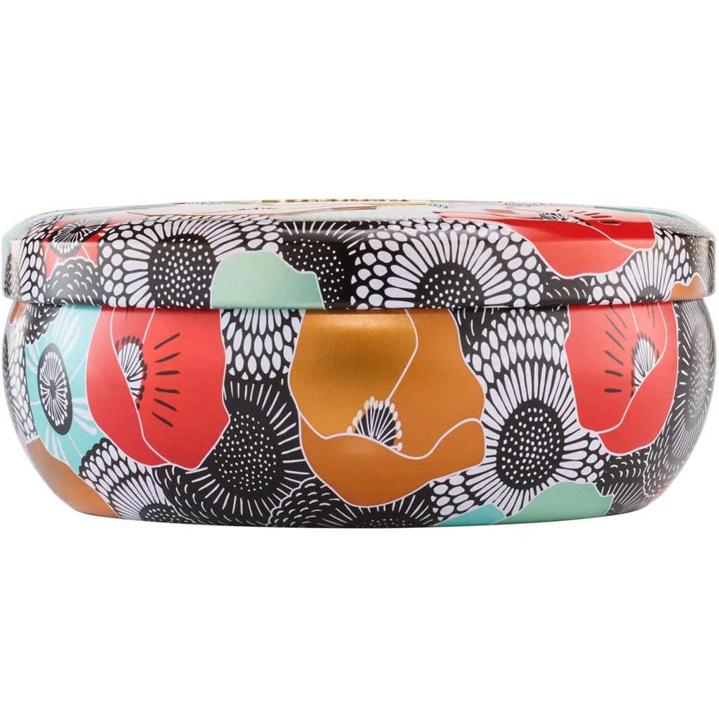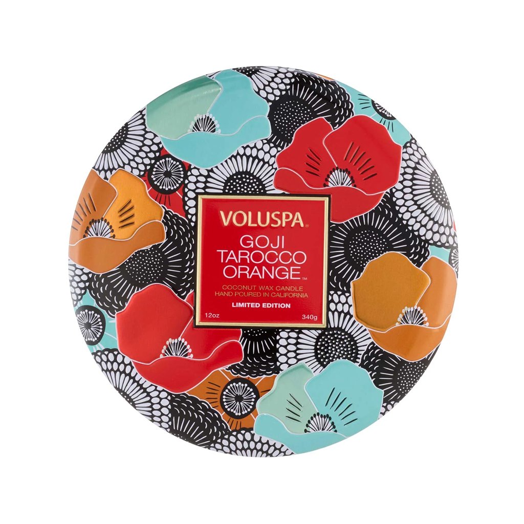 Exkluzivní vonná svíčka z limitované edice vytvořené k oslavě 25. výročí založení značky Voluspa. Kokosový vosk krémově bílé konzistence zachovává při pálení bohaté aroma včetně jemných tónů a zajišťuje čisté hoření. Plechovou nádobu s víčkem zdobí jemný reliéfní motiv s metalickým potiskem a po vypálení ji lze využít na uložení drobností nebo šperků. Svíčka 3 Wick Candle má 3 bavlněné knoty a provoní větší prostor po dobu až 40 hodin.