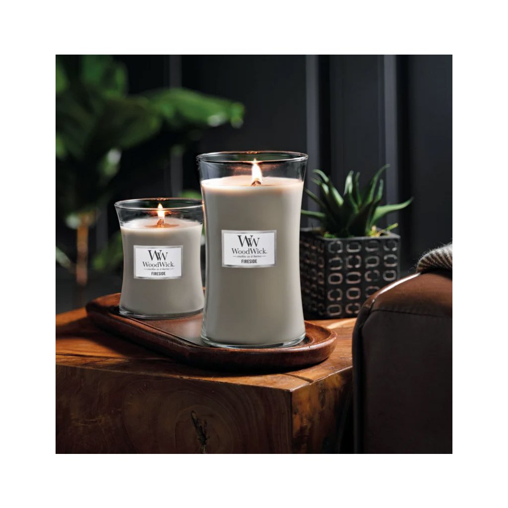 | "Každá značka má svůj bestseller, který milují zákazníci po celém světě. Yankee Candle má vůni čerstvě vypraného prádla Clean Cotton a WoodWick vůni ohně v krbu Fireside. Tato vůně je přesně taková, jak slibuje její název a evokuje útulnou atmosféru posezení u krbu. Dřevité aroma santalového dřeva je v ní odlehčené dotekem citrusů a nepůsobí tak výrazně jako u podobné vůně s názvem Kouř z cedrového dřeva (Wood Smoke), která je více kouřová a ostřejší. Oheň v krbu je svěží variantou dřevitých vůní a skvěle se hodí jako rodinná vůně. A samozřejmě vynikne nejvíc v provedení svíčky s praskajícím dřevěným knotem, která svým zvukovým doprovodem ještě víc umocní atmosféru posezení u ohně. S touto kombinací vlastností je WoodWick nepřekonatelný a pokud milujete dřevité vůně jako santalové a cedrové dřevo nebo doma nemáte krb, tak vůně Fireside je pro vás jako stvořená." – Iveta |