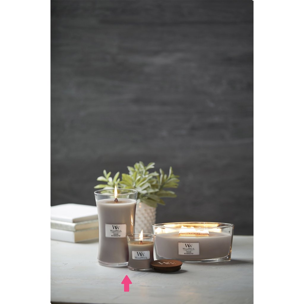 Elegantně tvarovaná svíčka WoodWick s dřevěným víčkem provoní váš domov a naplní ho jemným zvukem praskajícího knotu, který podpoří atmosféru pohodlí a útulnosti. Patentovaný dřevěný knot Pluswick® má extra zářivý plamen a přináší jedinečný zážitek praskání, připomínající oheň v krbu. Směs prémiového parafínu a sójového vosku s vysoce koncentrovanými vůněmi zajišťuje čisté hoření a intenzivní provonění. Po vypálení můžete sklenici využít jako vázu na květiny či pro další dekorační účely.
