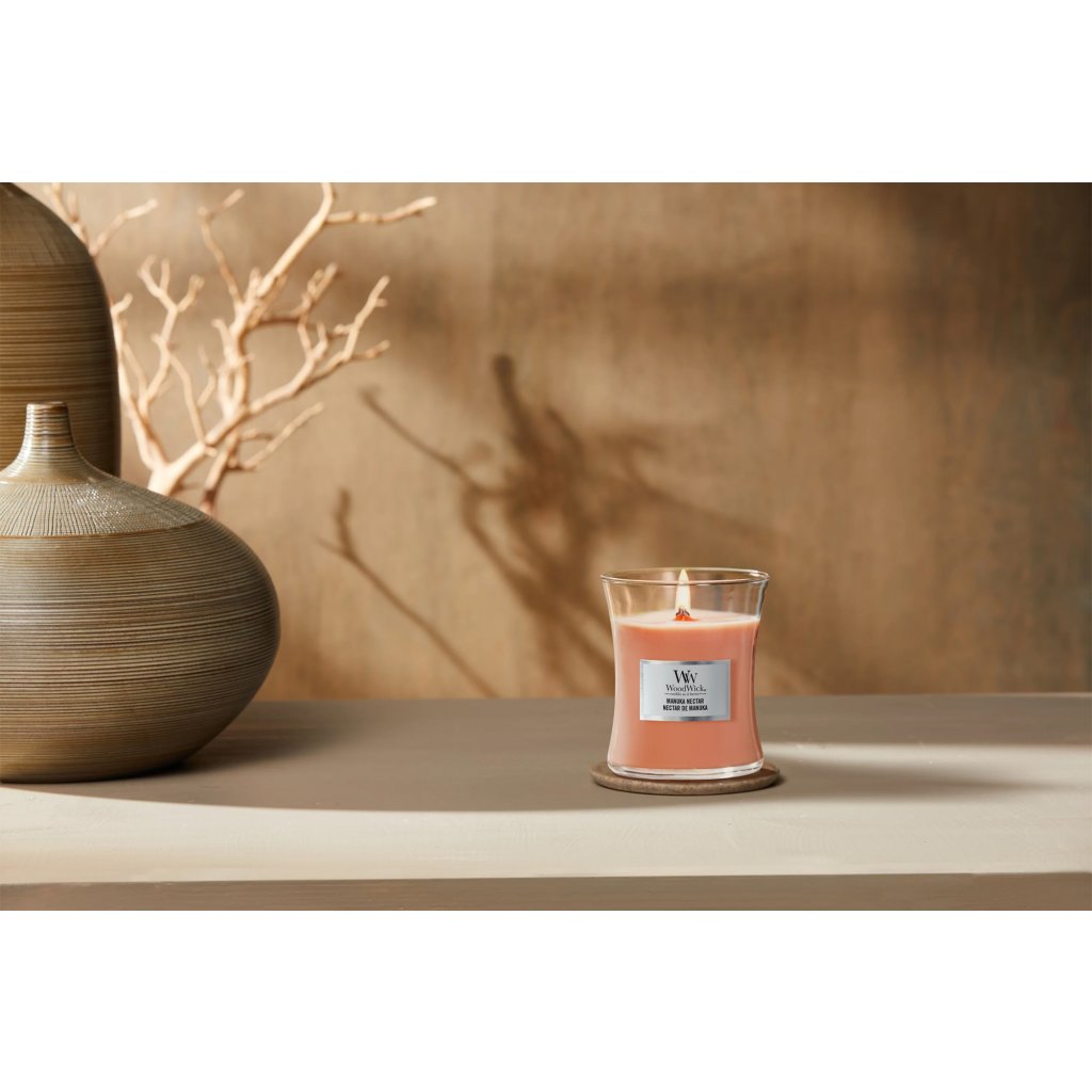 Od roku 2006 značka WoodWick přináší svíčky s unikátním dřevěným knotem, který při hoření praská a vytváří atmosféru jako u krbu. Svíčky jsou dostupné v různých provedeních, včetně populárních lodiček a Trilogy svíček, které kombinují tři vůně. Každá svíčka je uložena ve skleněné nádobě s praktickým víčkem, které slouží jako podstavec. Svíčky obsahují směs parafínu a sójového vosku a dřevěný knot zajišťuje rovnoměrný plamen a intenzivní vůni.
