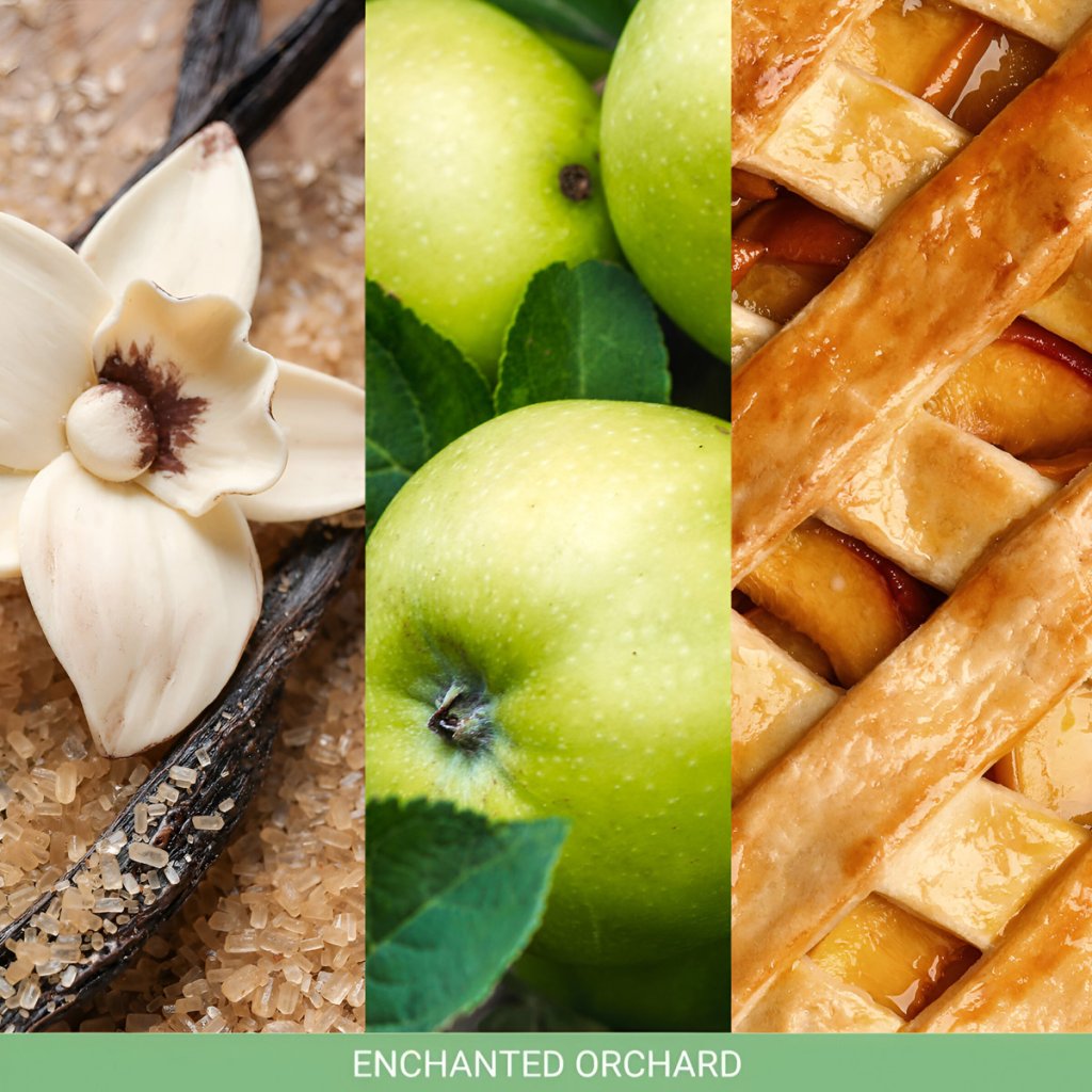 Vydejte se na smyslnou cestu do ovocného sadu, kde jsou stromy obtěžkané šťavnatými jablky, vyzrálými meruňkami a broskvemi, a zastavte se ve venkovské kuchyni, kde se z nich právě pečou ty nejsladší dobroty. Vzduchem se line vůně pečeného ovoce, hřejivého koření, jablek namočených v karamelu, teplých pralinek a koláčů s pekanovými ořechy, krémovou vanilkou a hnědým cukrem. Tato sladce ovocná, kořeněná a hřejivá vůně evokuje podzimní atmosféru a nabízí lahodný únik do nejsladšího období přírody.